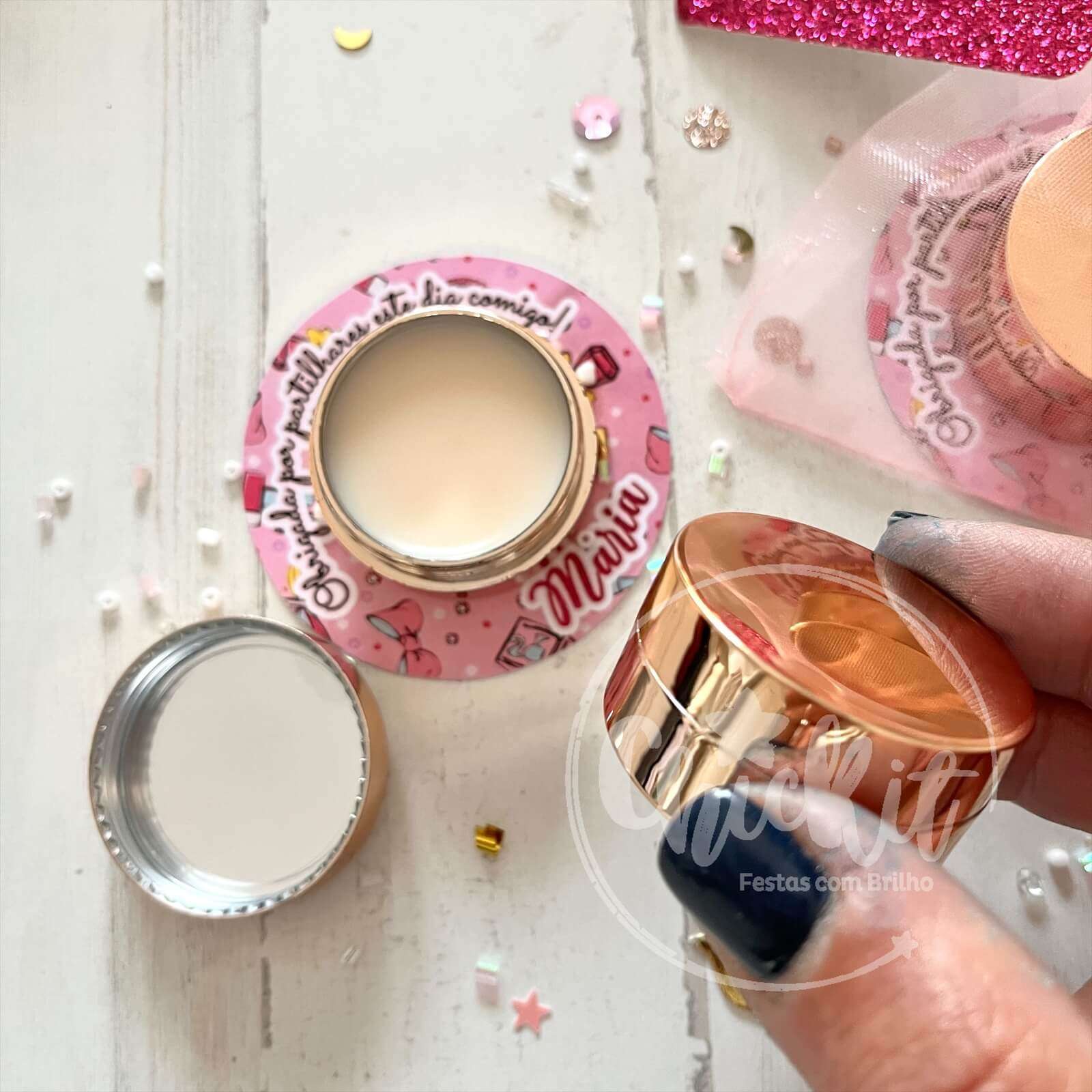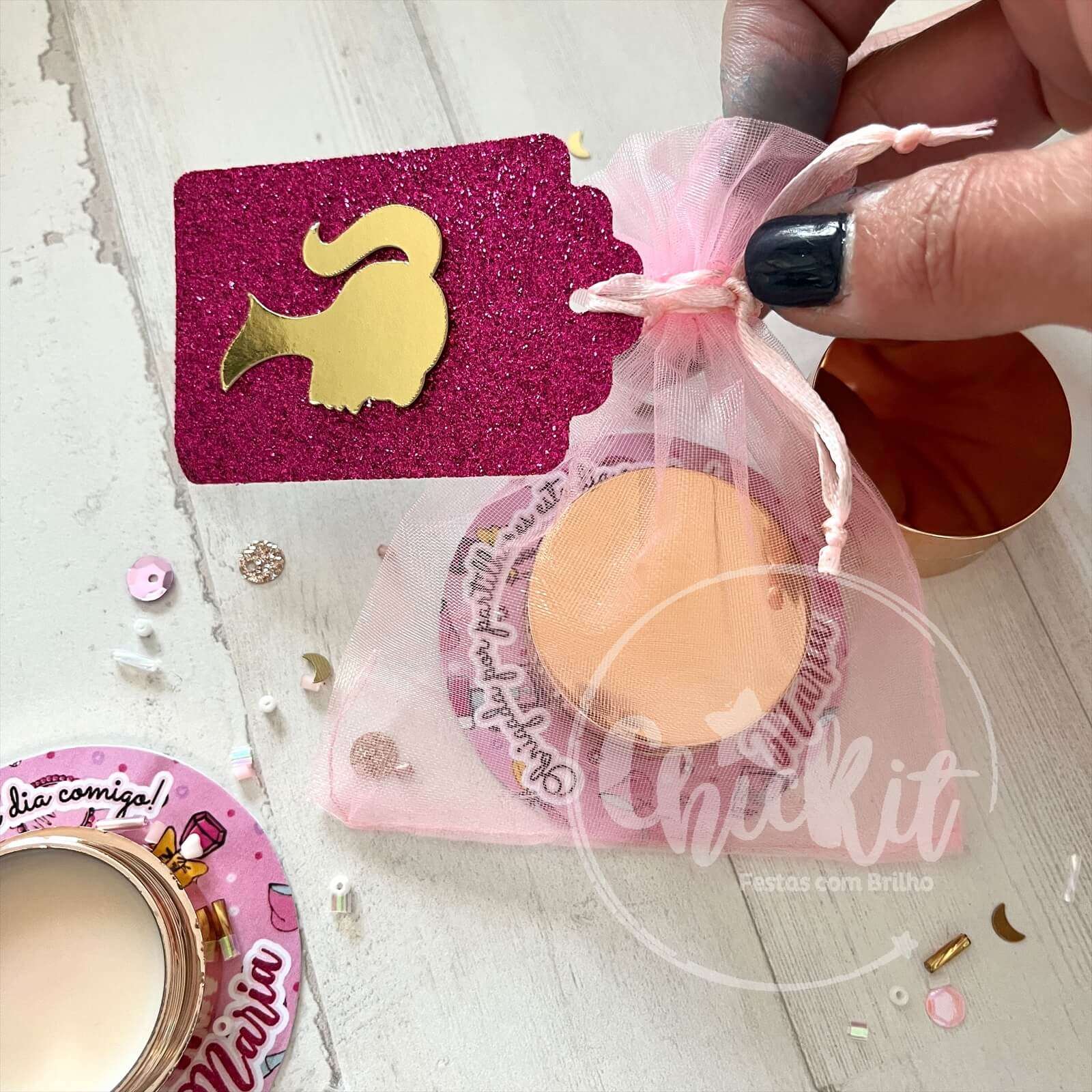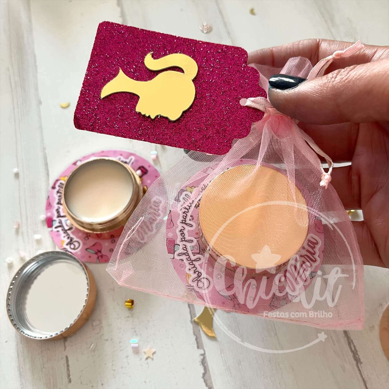 Ideal para lembranças femininas, festas infantis, despedidas de solteira ou até kits de convidada.