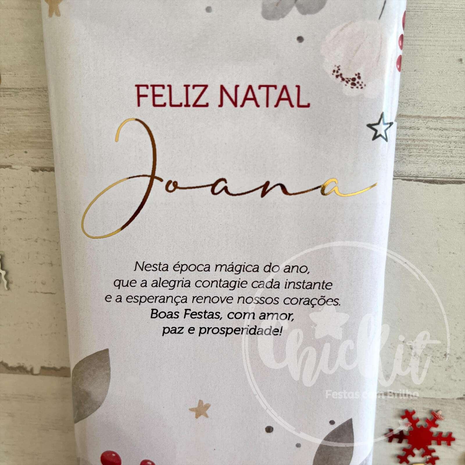 Este chocolate especial é mais do que um mero presente; é uma lembrança personalizada, feita com amor e pensada especificamente para tornar o Natal daquela pessoa especial ainda mais doce. Ofereça um pedacinho de alegria e carinho neste Natal, surpreendendo quem você valoriza com um gesto único e saboroso!