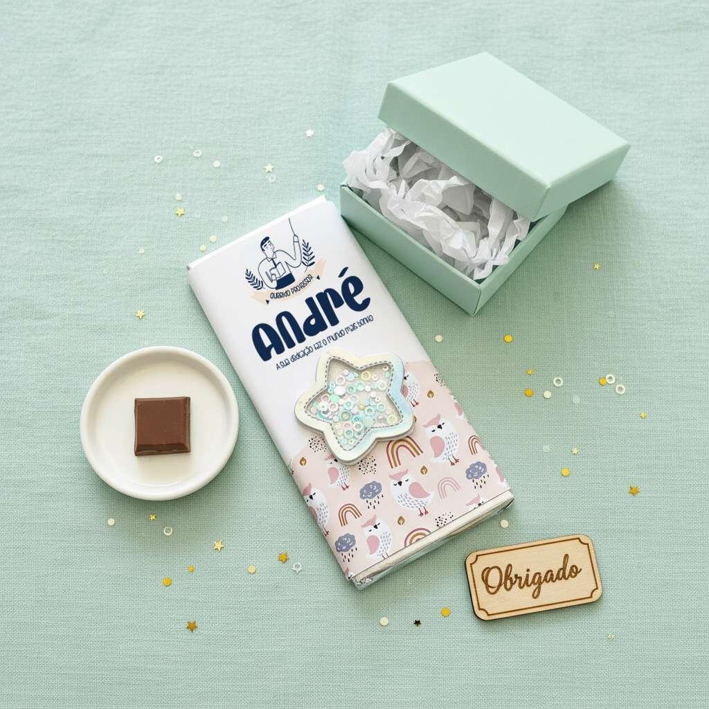 Chocolate Personalizado para Professor 200g – “A sua dedicação faz o mundo mais bonito”