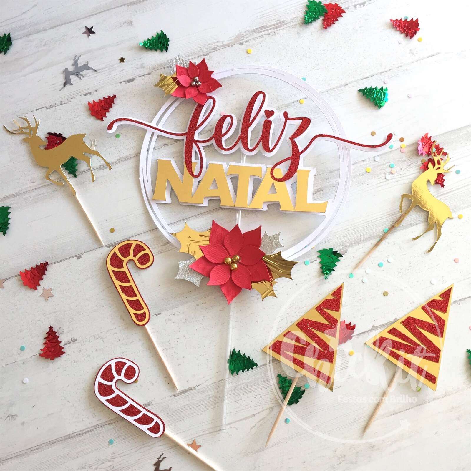 Adquire o Conjunto de Toppers de Bolo Feliz Natal e adicione um toque de magia à sua festa com a mensagem “Feliz Natal”!