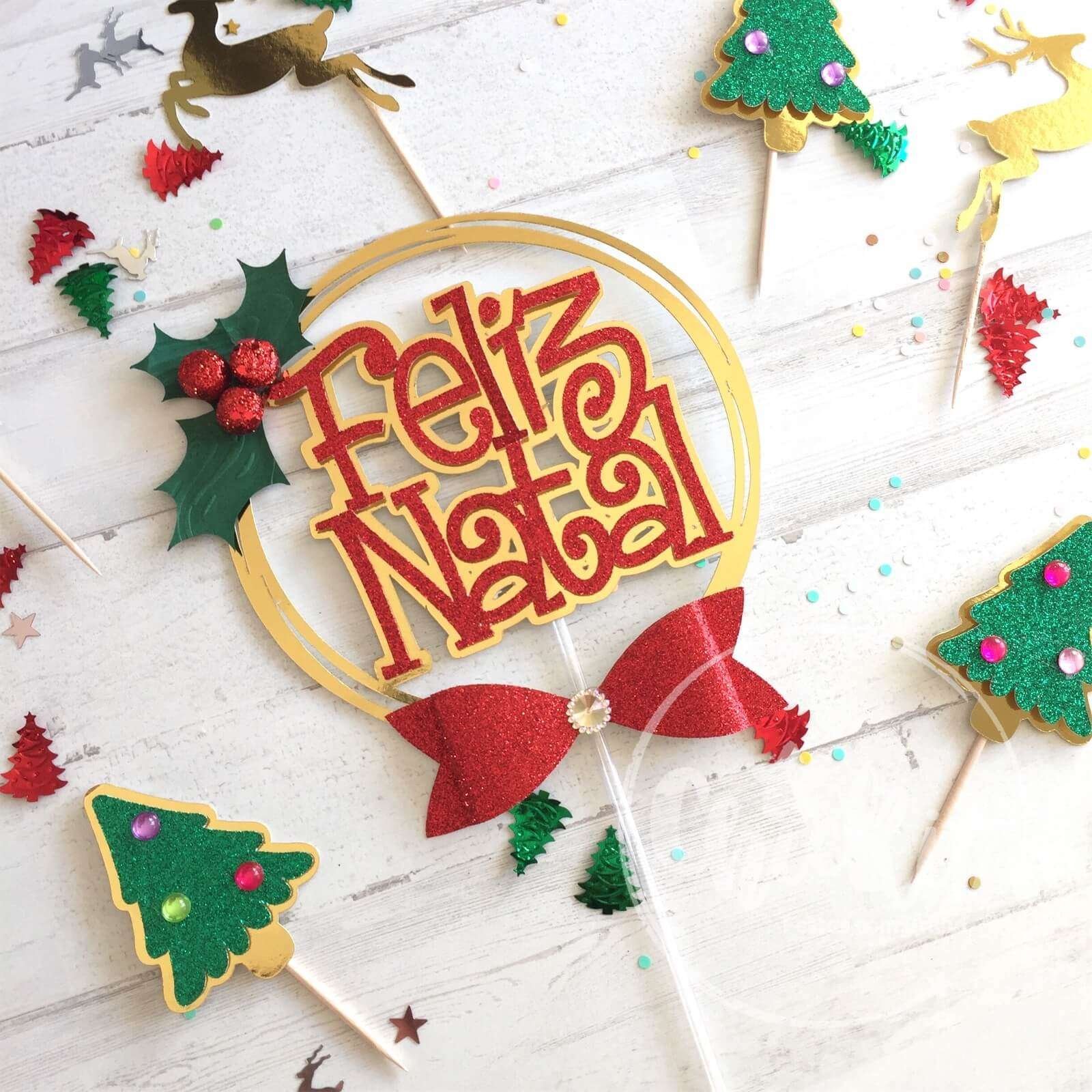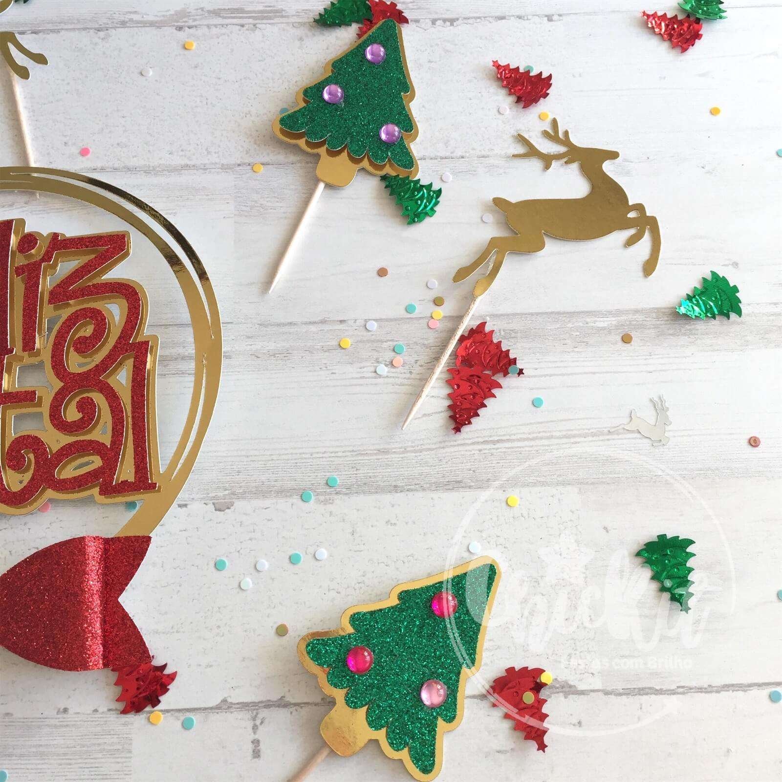Este conjunto mágico inclui 1 topper com a mensagem “Feliz Natal” e vários mini-topos encantadores com renas e árvores de Natal. Feitos com detalhes meticulosos, são o toque perfeito para a sua decoração natalícia.