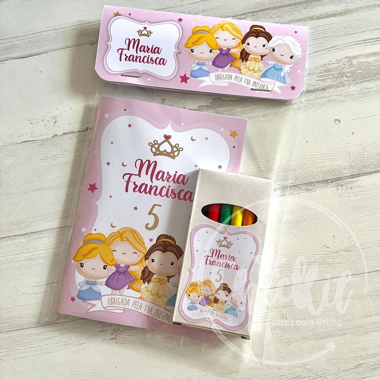 E para tornar tudo ainda mais único, tanto o caderno quanto os lápis são personalizados com o nome do aniversariante e o tema da festa.