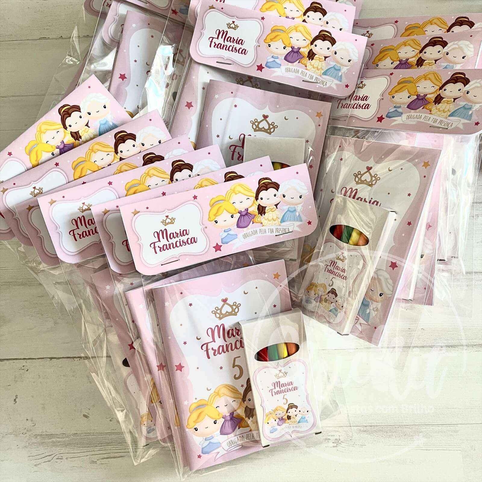 Todos personalizados com o nome do aniversariante e o tema da festa! Cada Kit vem embalado individualmente em embalagem personalizada.