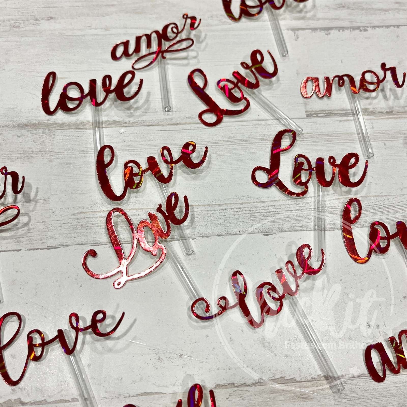 – 8 mini topos palavra “Love” e “Amor” 5cm