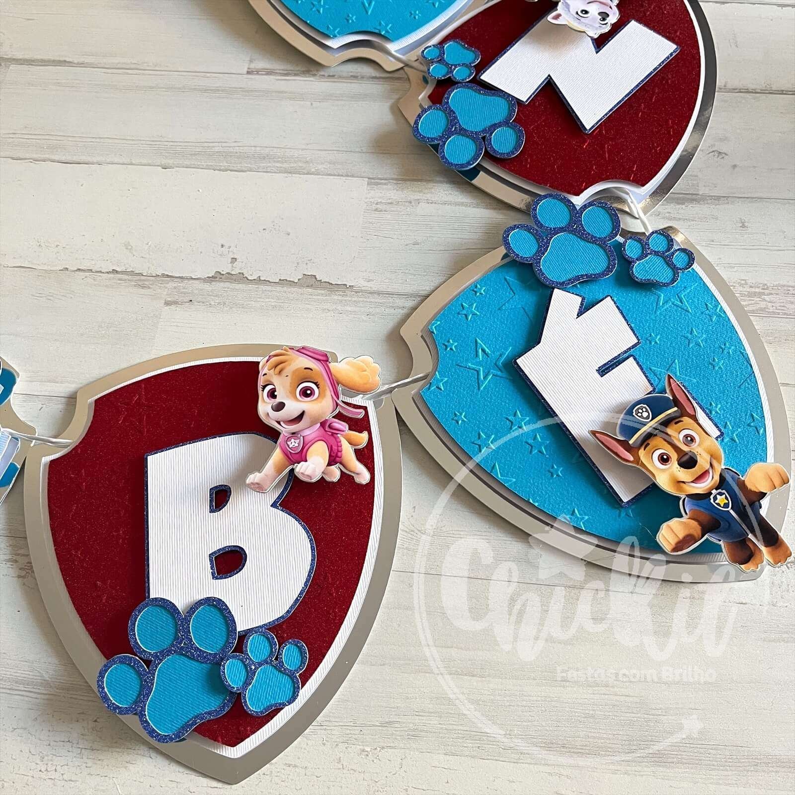 - Uma grinalda vibrante e colorida para enfeitar o ambiente, criando uma atmosfera festiva. Com elementos gráficos inspirados na Patrulha Pata, a grinalda adiciona um toque especial à decoração.