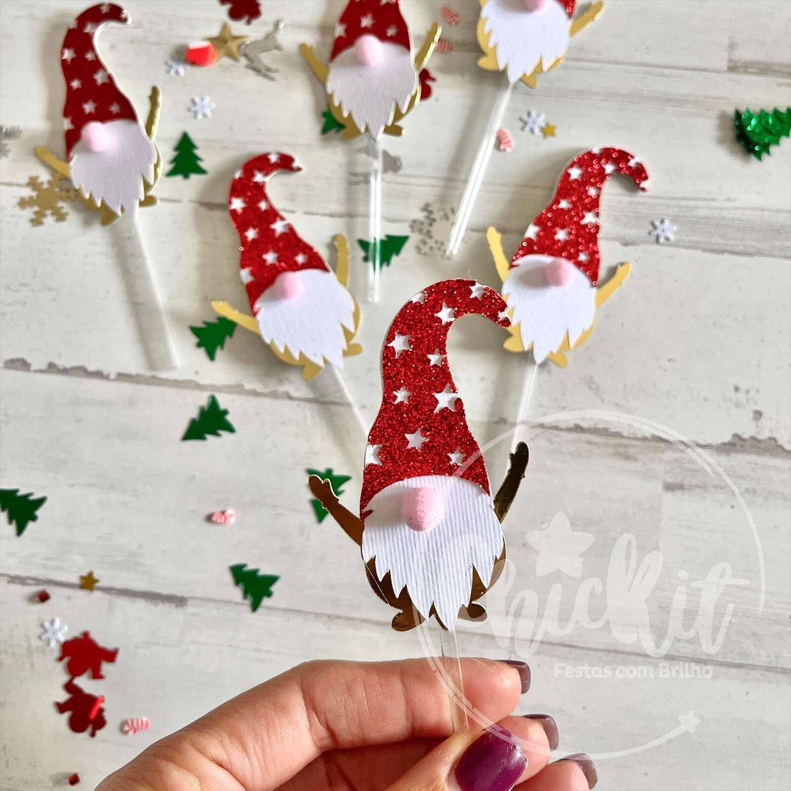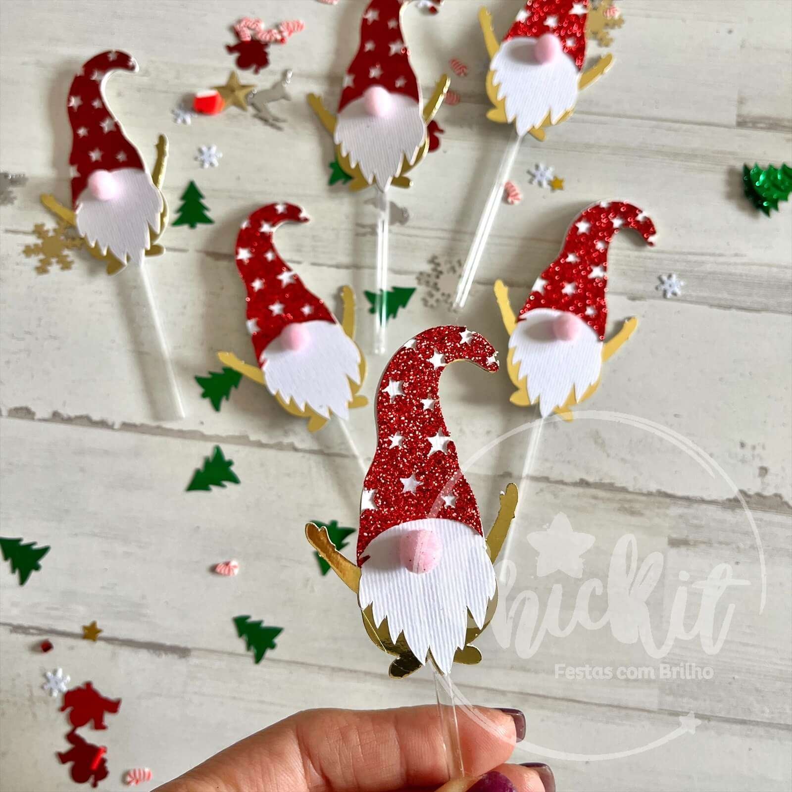 Perfeitos para todas as Festas de Natal: Seja uma celebração em família ou um evento corporativo, estes mini-topos de gnomos são a escolha ideal.