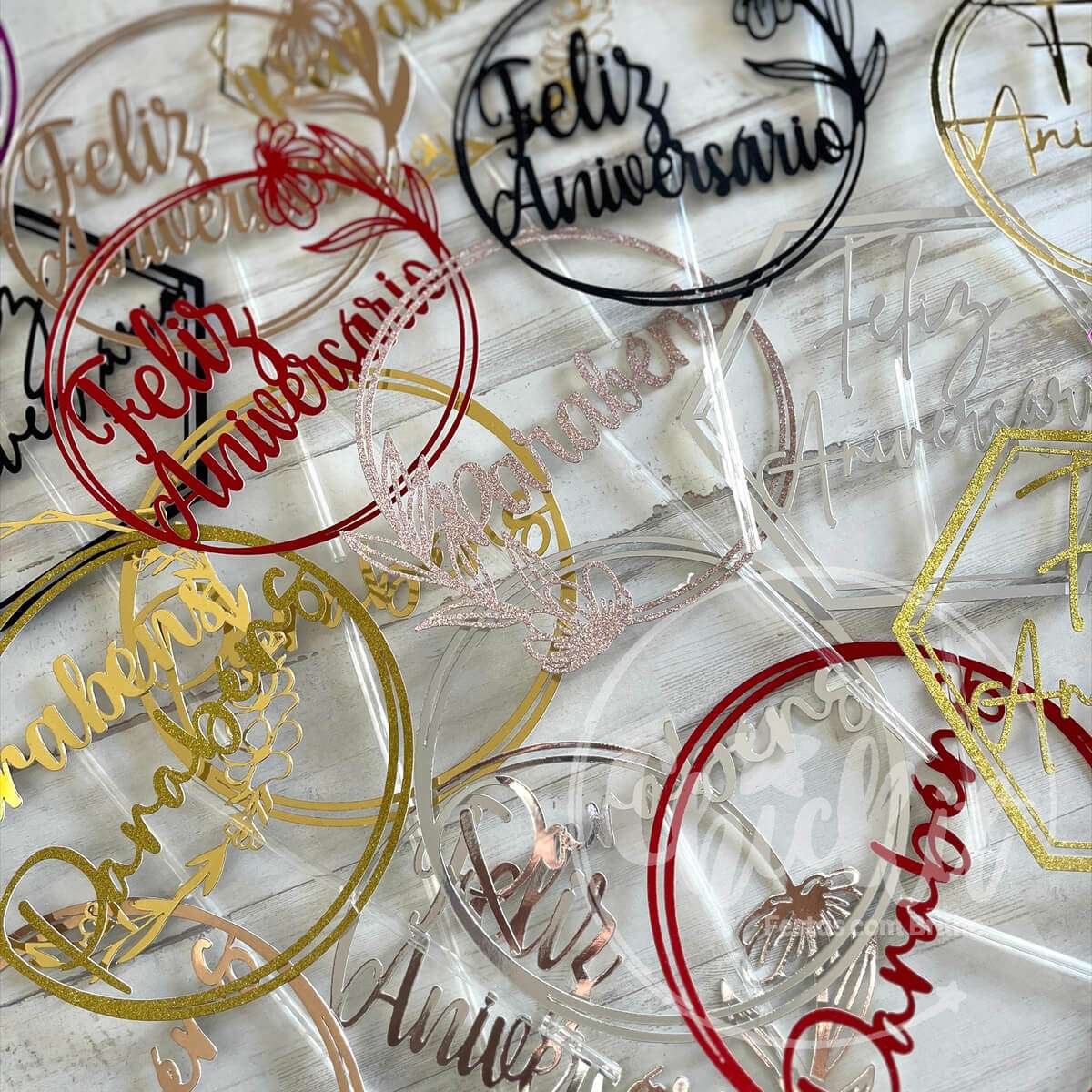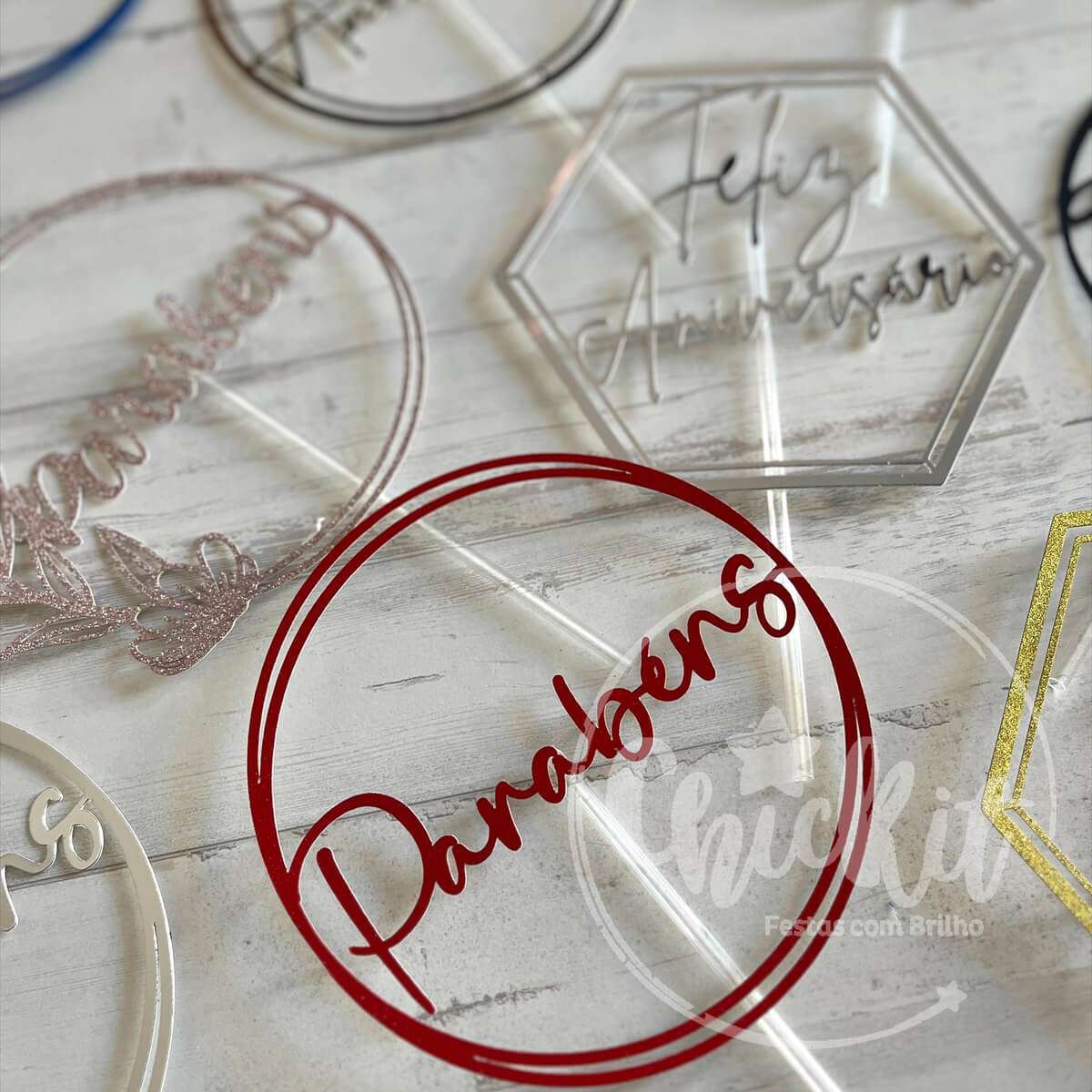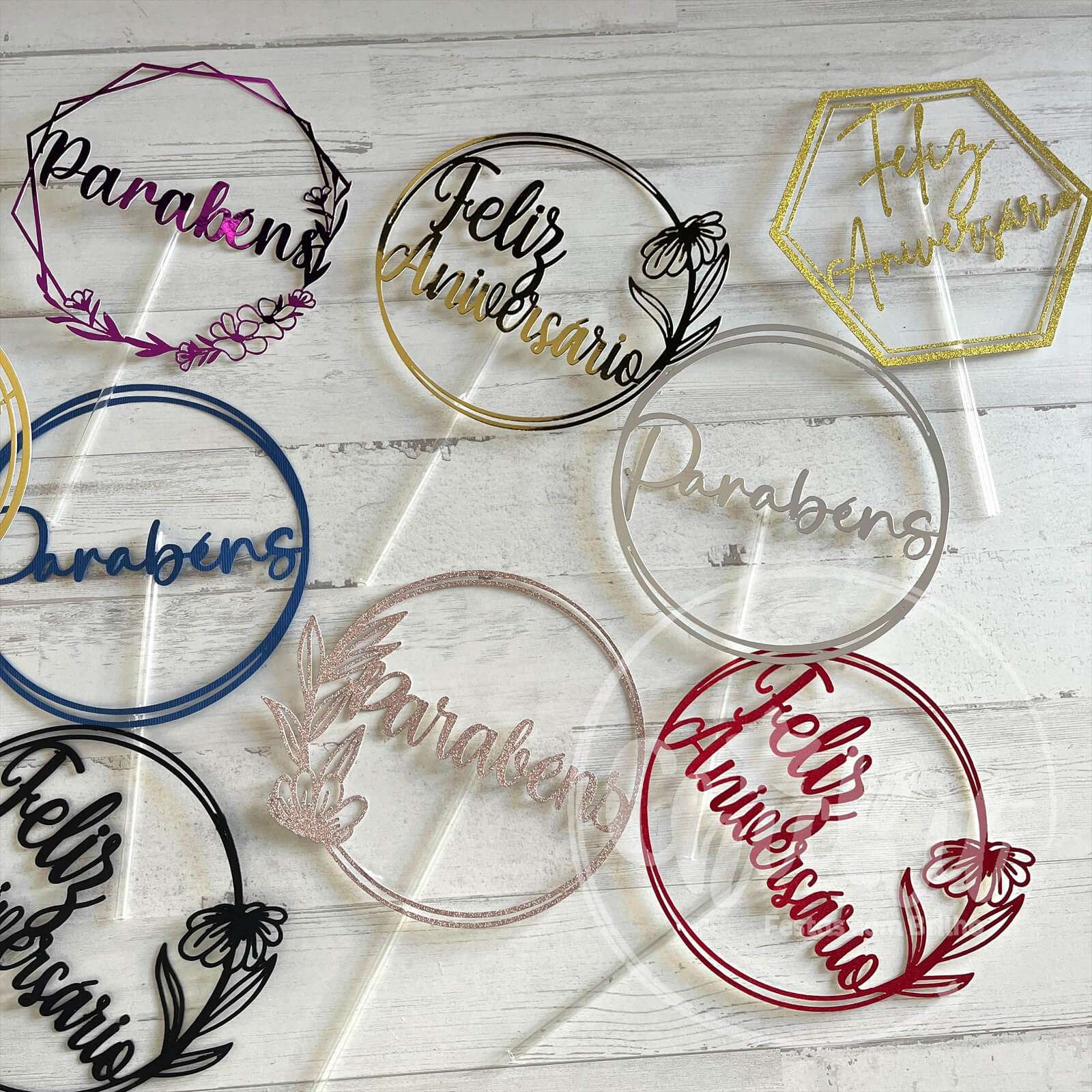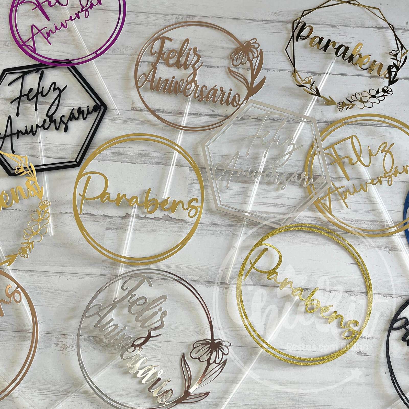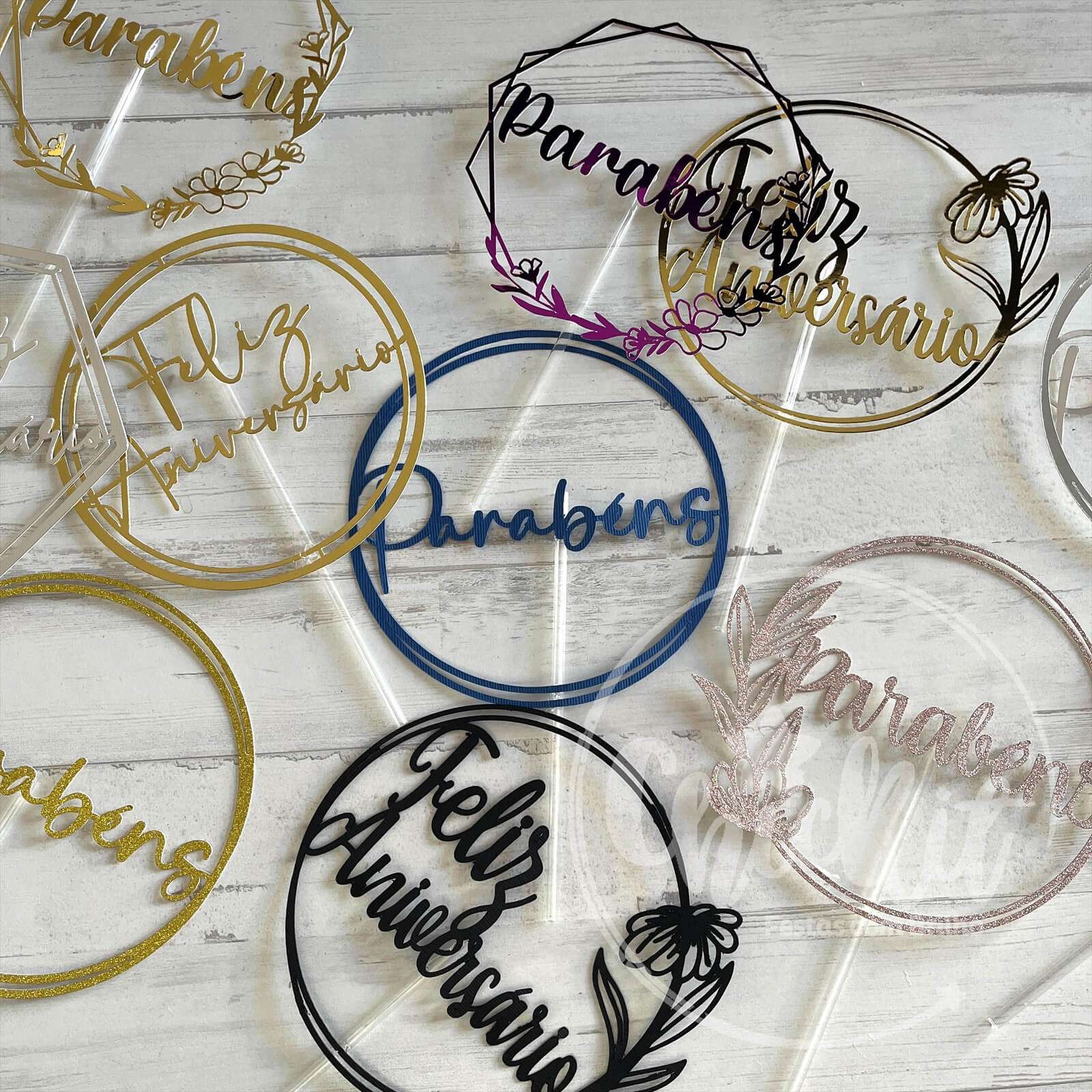 Pack 6 Topos de Bolo Parabéns/Feliz Aniversário