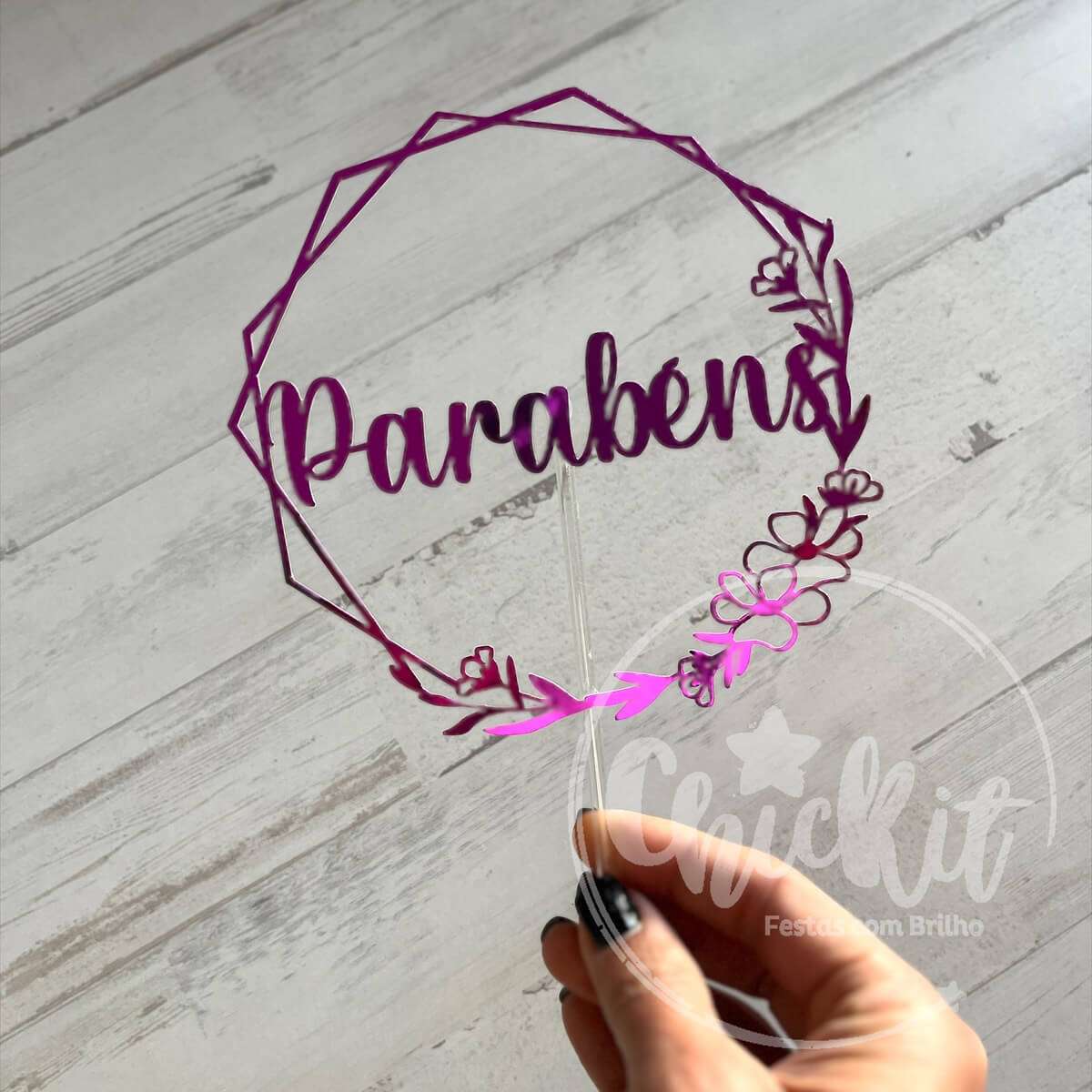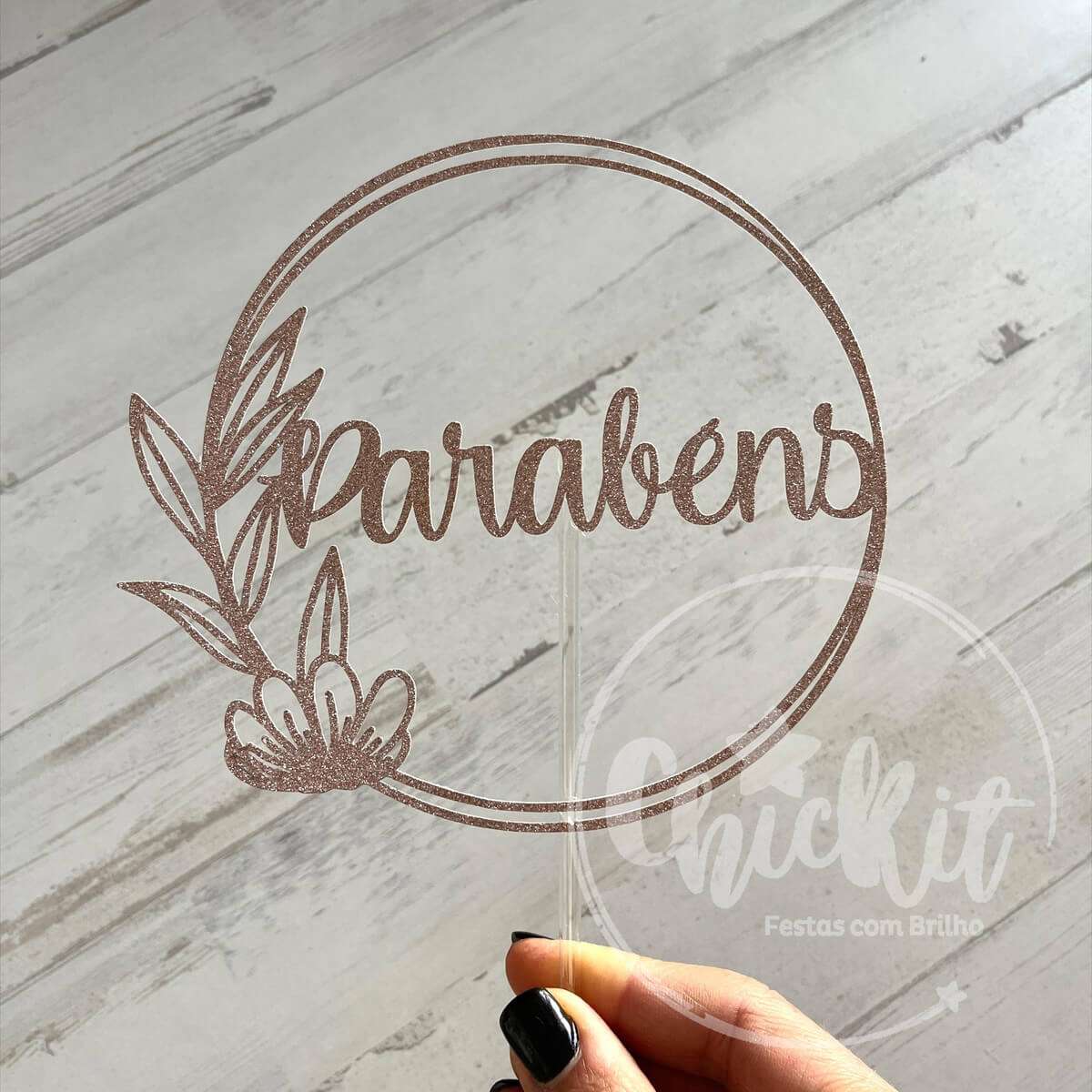 Topo em cartolina 1 camada, com pauzinho transparente