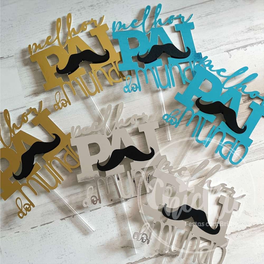 Celebre o herói da família com o nosso pack de topos de bolo “O Melhor Pai do Mundo”! Cada topo de bolo apresenta um bigode estilizado, adicionando um toque de charme e diversão à celebração. Ideal para o Dia do Pai, aniversários ou simplesmente para expressar o amor e gratidão.