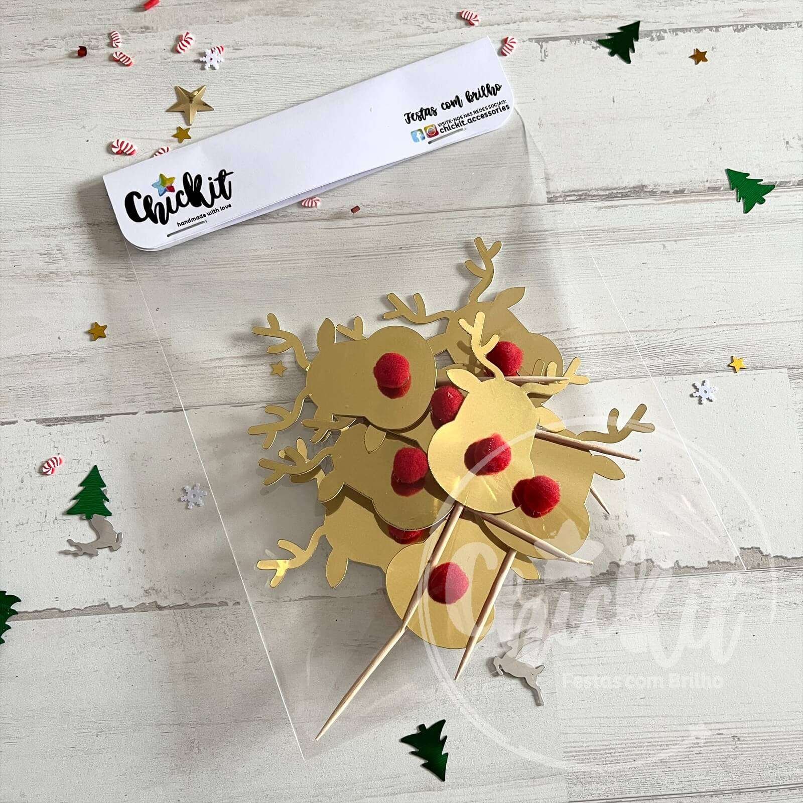 Perfeitos para todas as Festas de Natal: Seja uma celebração em família ou um evento corporativo, estes toppers de renas Rodolfo são a escolha ideal.