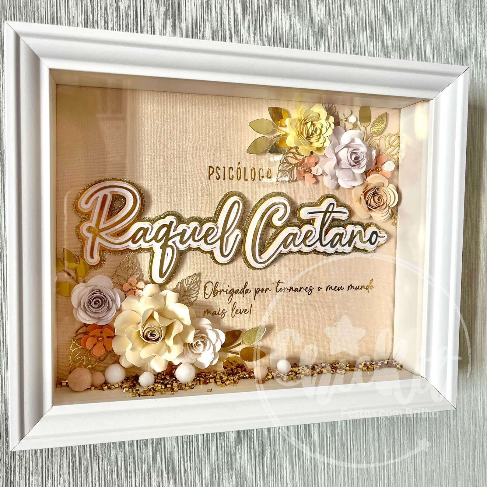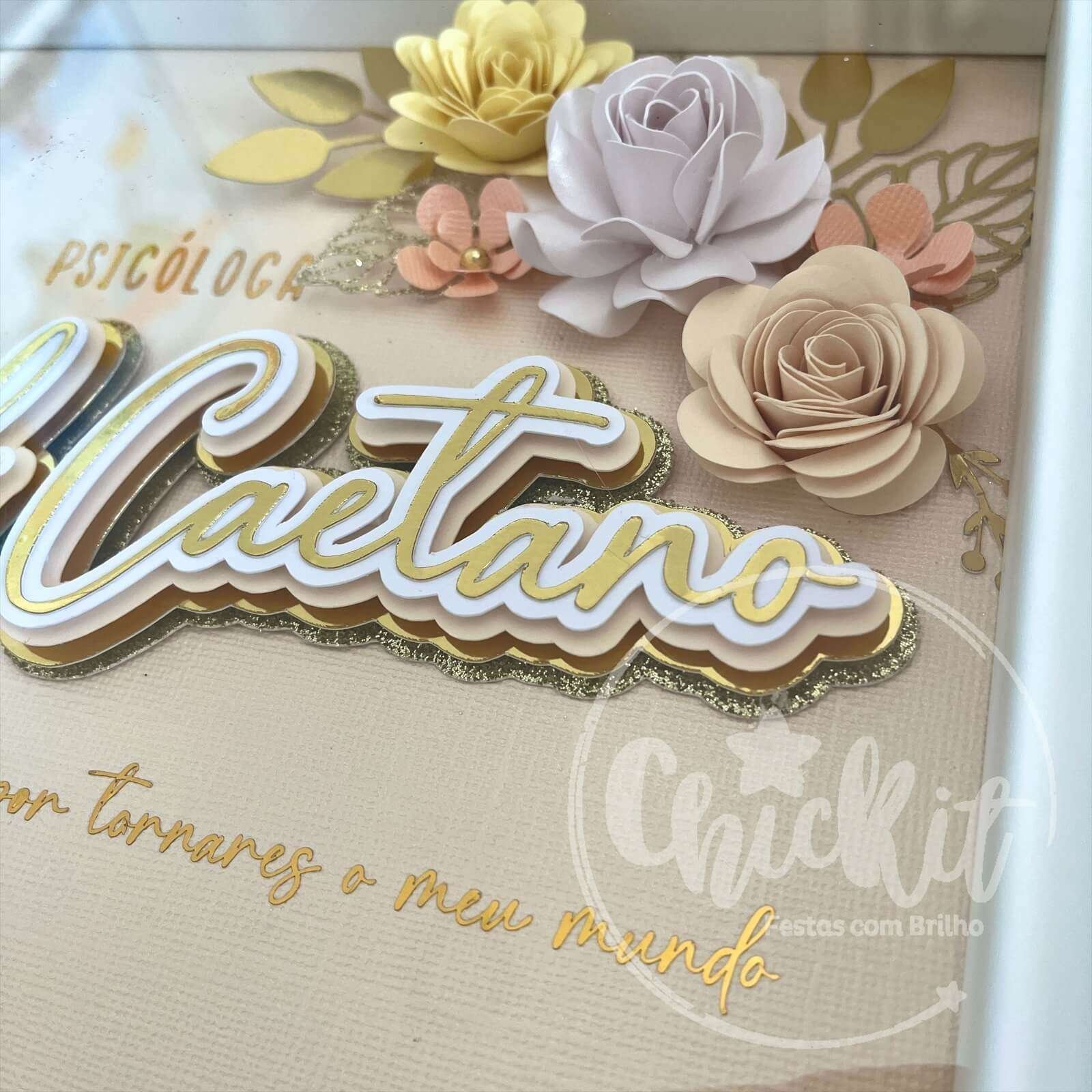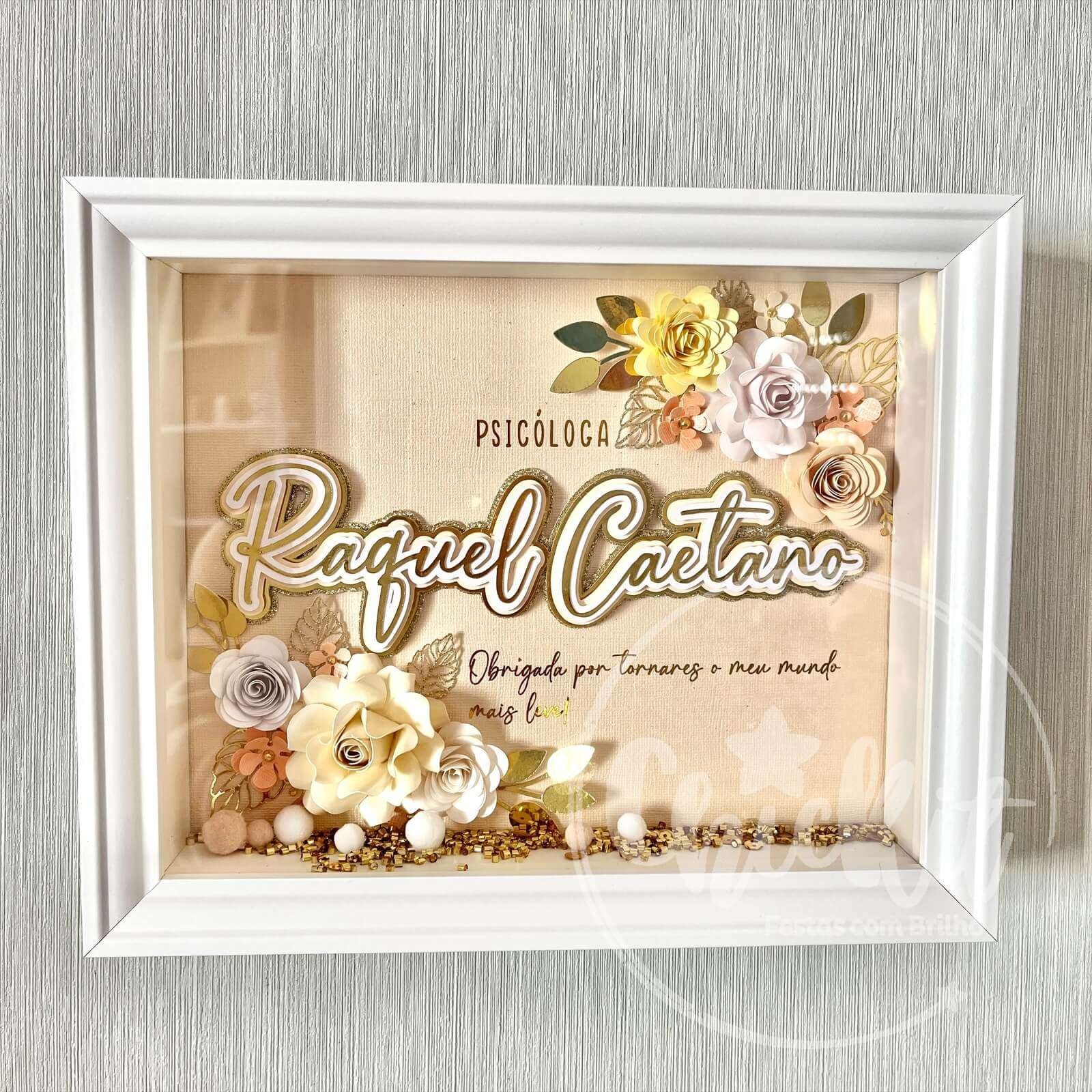 Quadro com Nome e Flores de Papel Personalizável 20×25