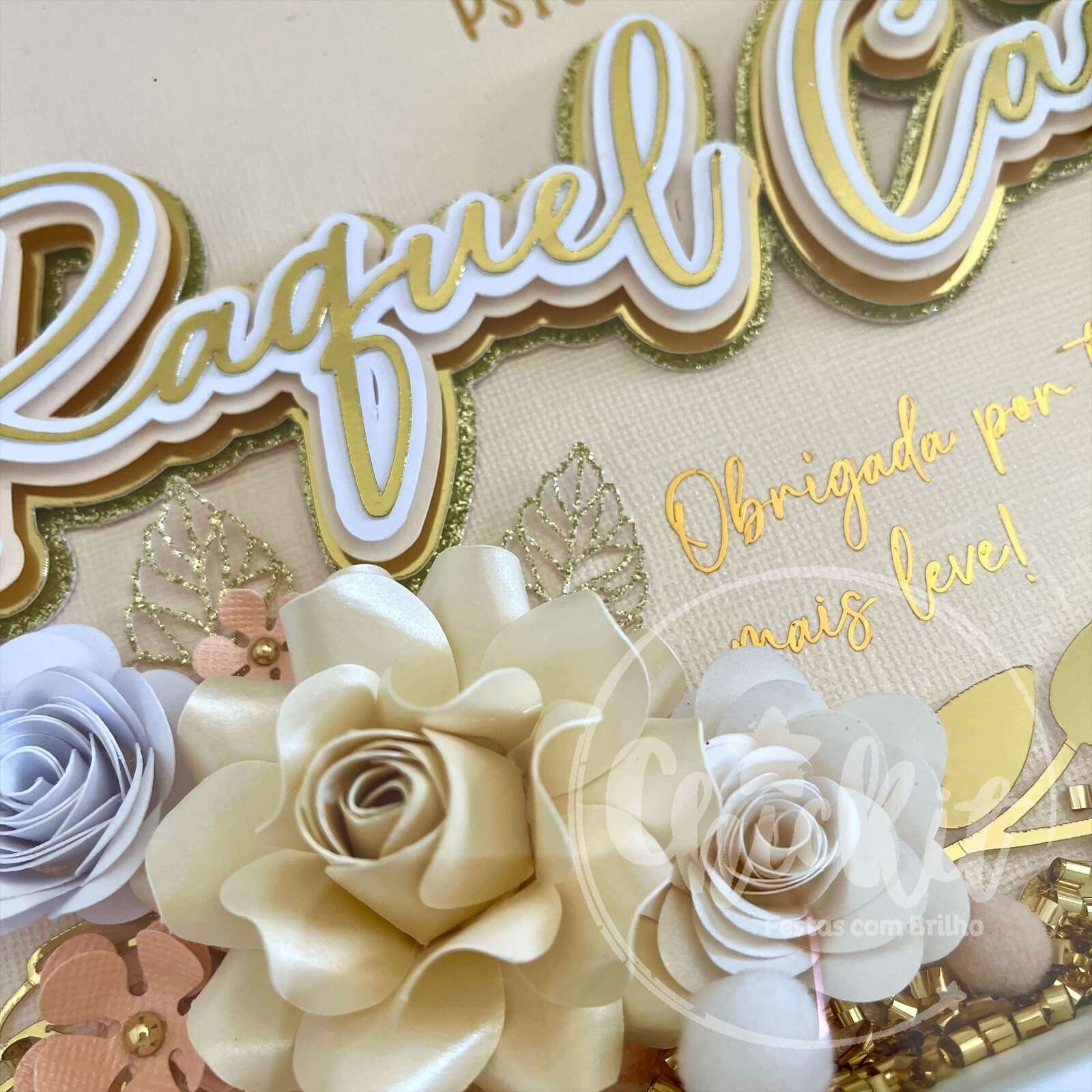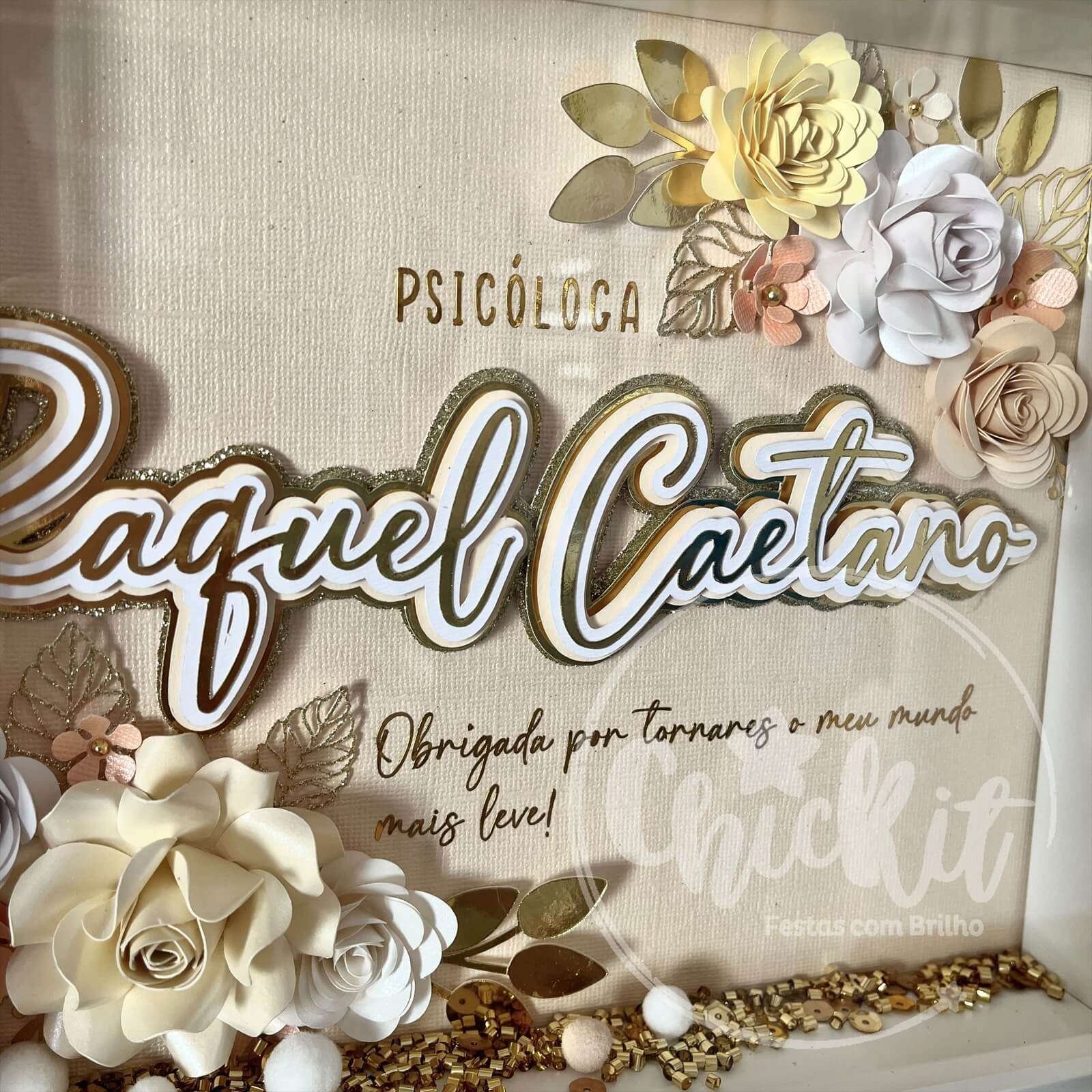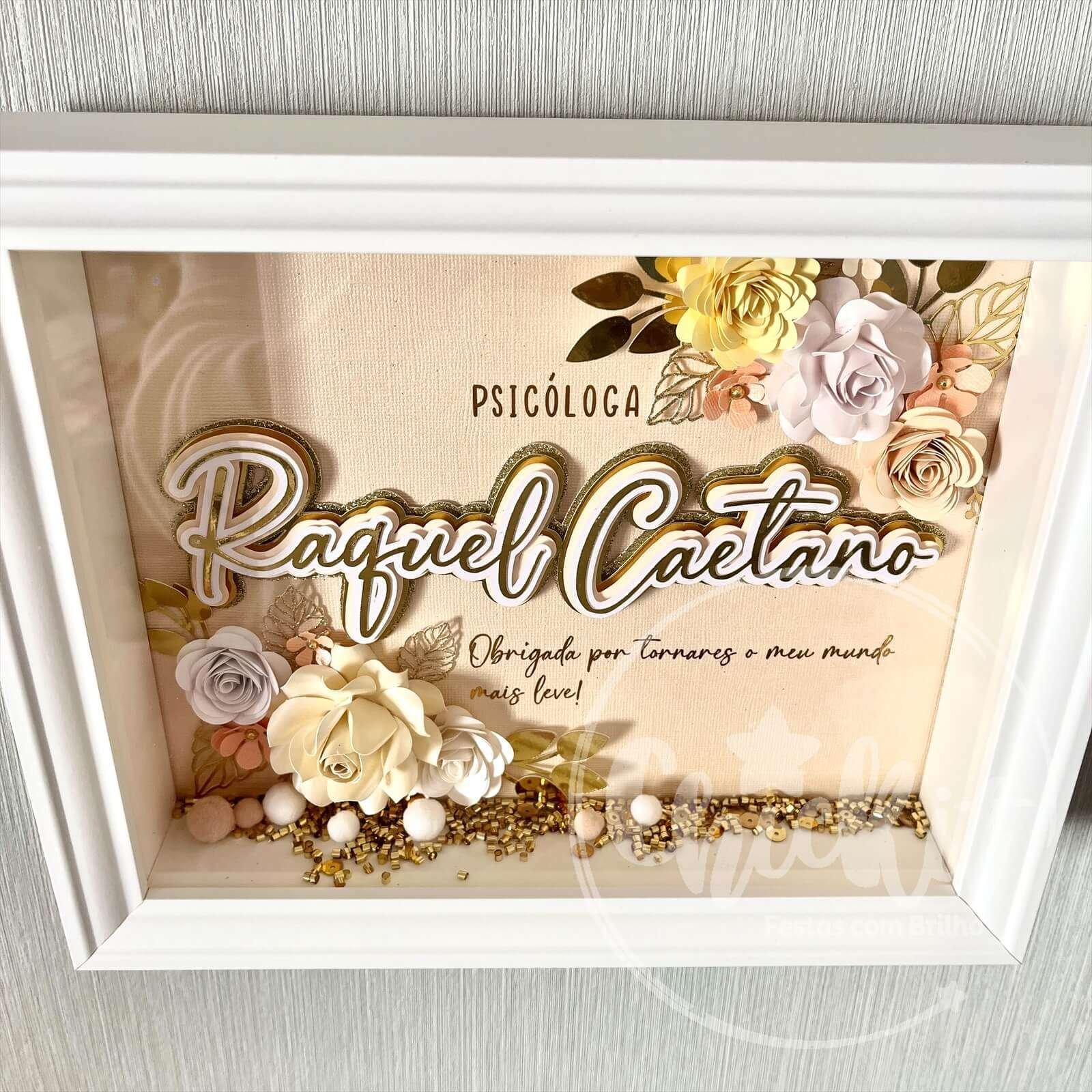 Quadro com Nome e Flores de Papel Personalizável 20×25