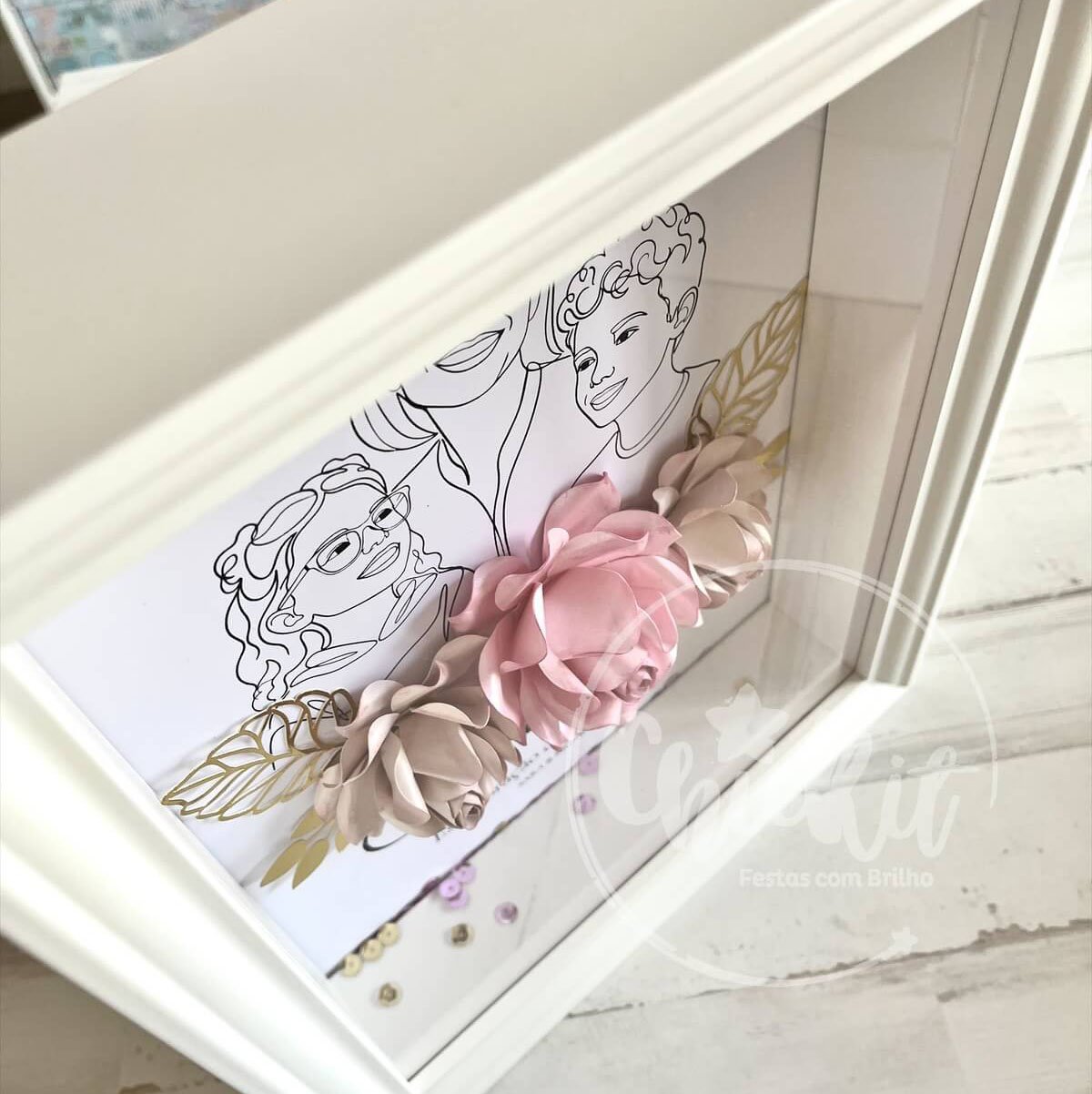 - Material: papel, elementos decorativos e moldura