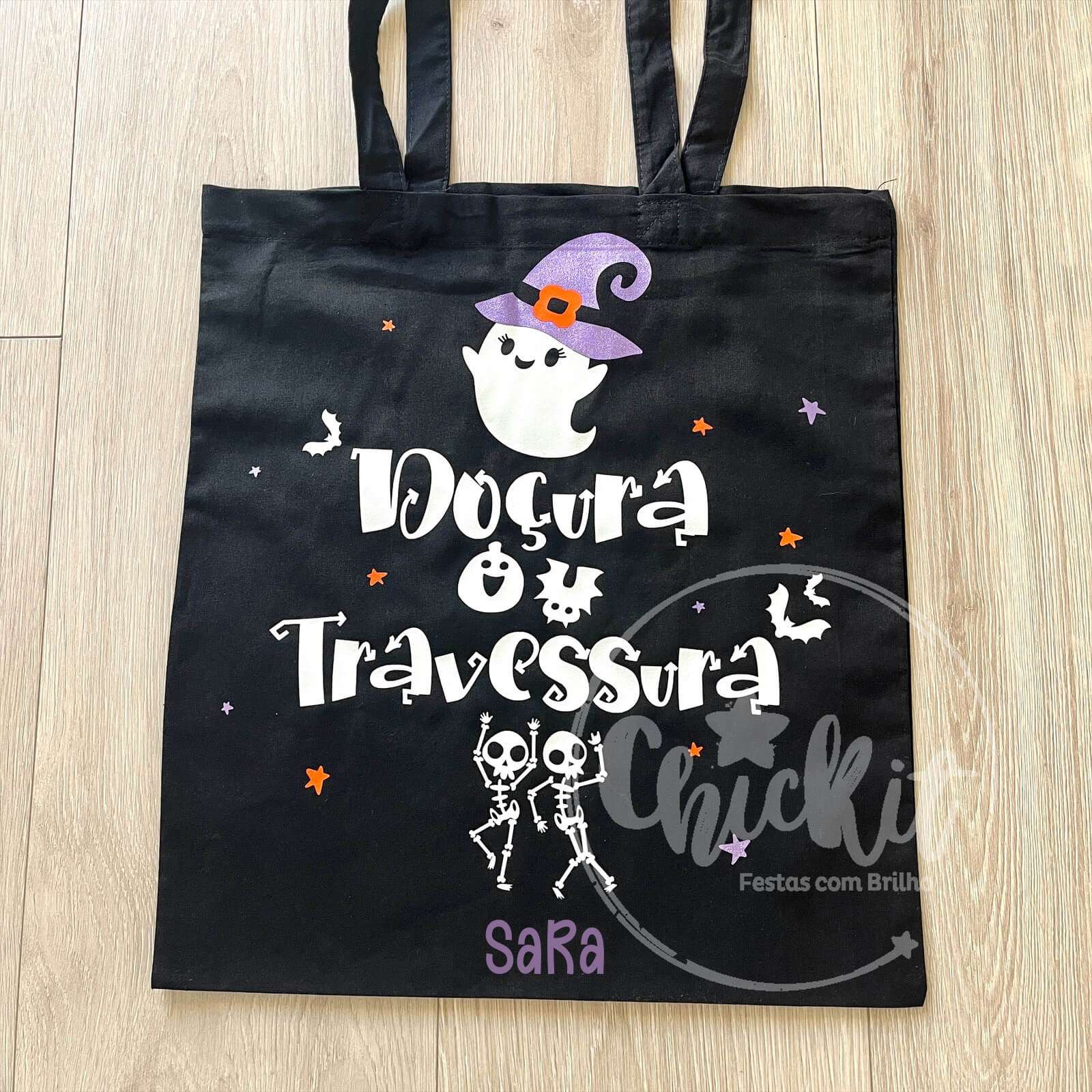 Saco Halloween com Nome – Glow in the Dark – Doçura ou Travessura