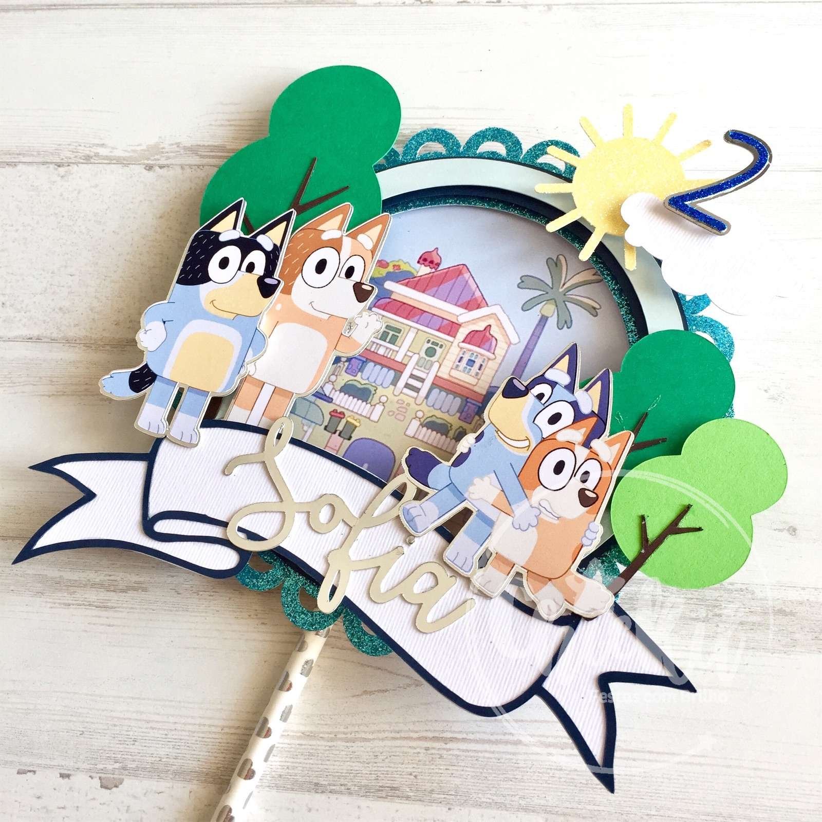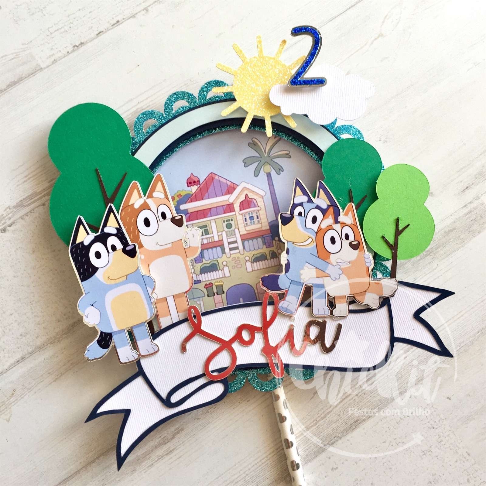 Topo de Bolo “Bluey” – Personaliza com Nome e Idade para uma Festa Inesquecível!