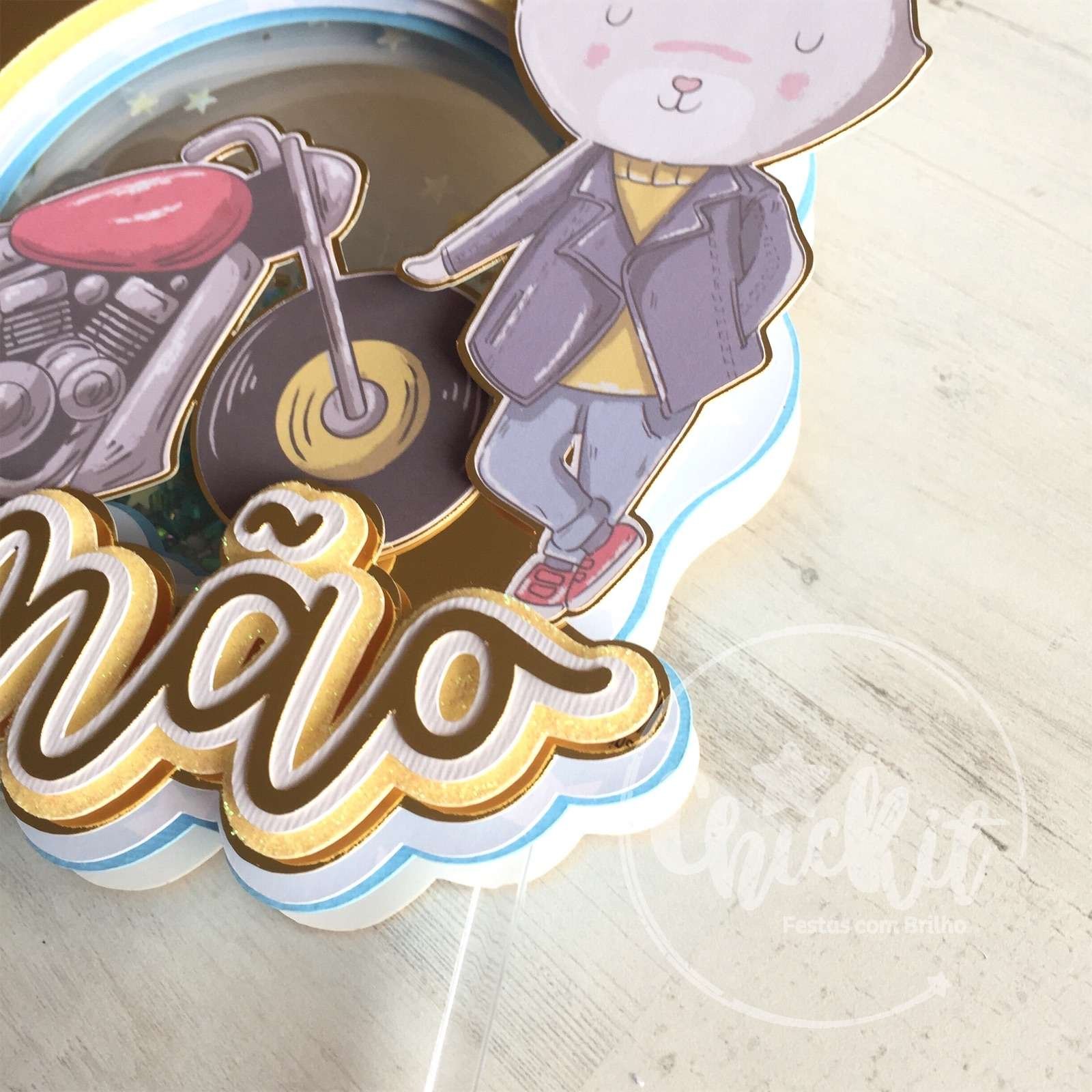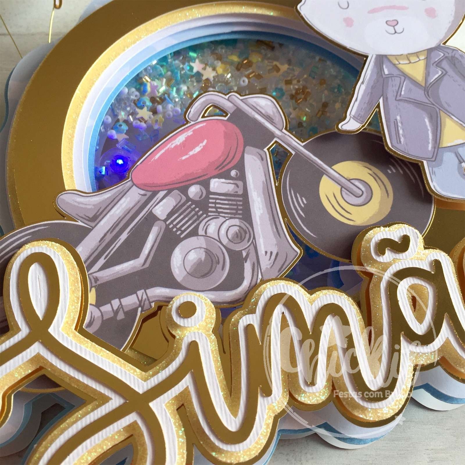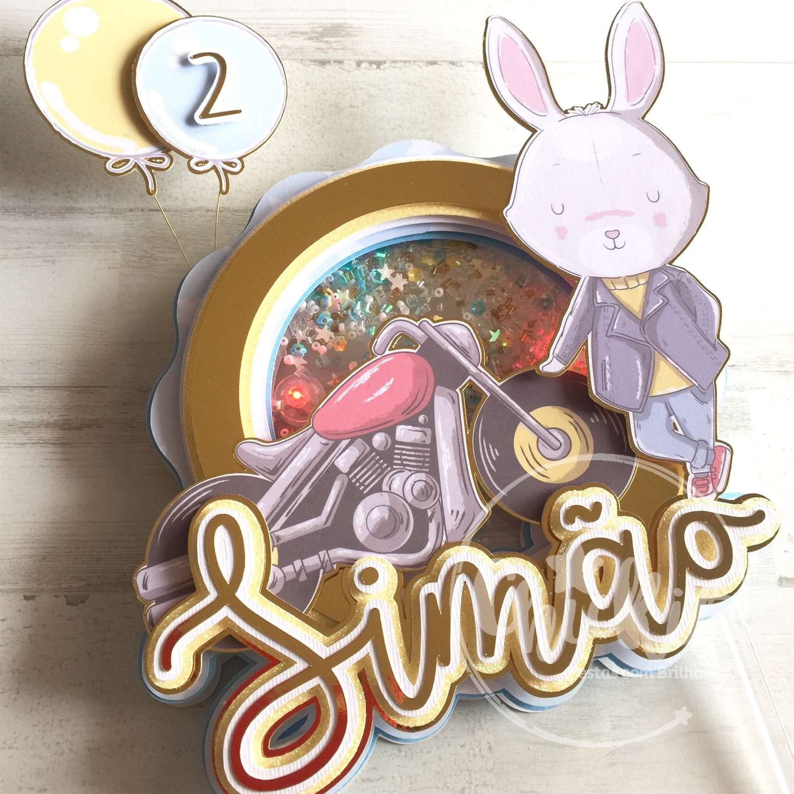 🐰🏍️ Topo Shaker Coelhinho Motard Personalizável: Diversão Única no Bolo! 🎂💡