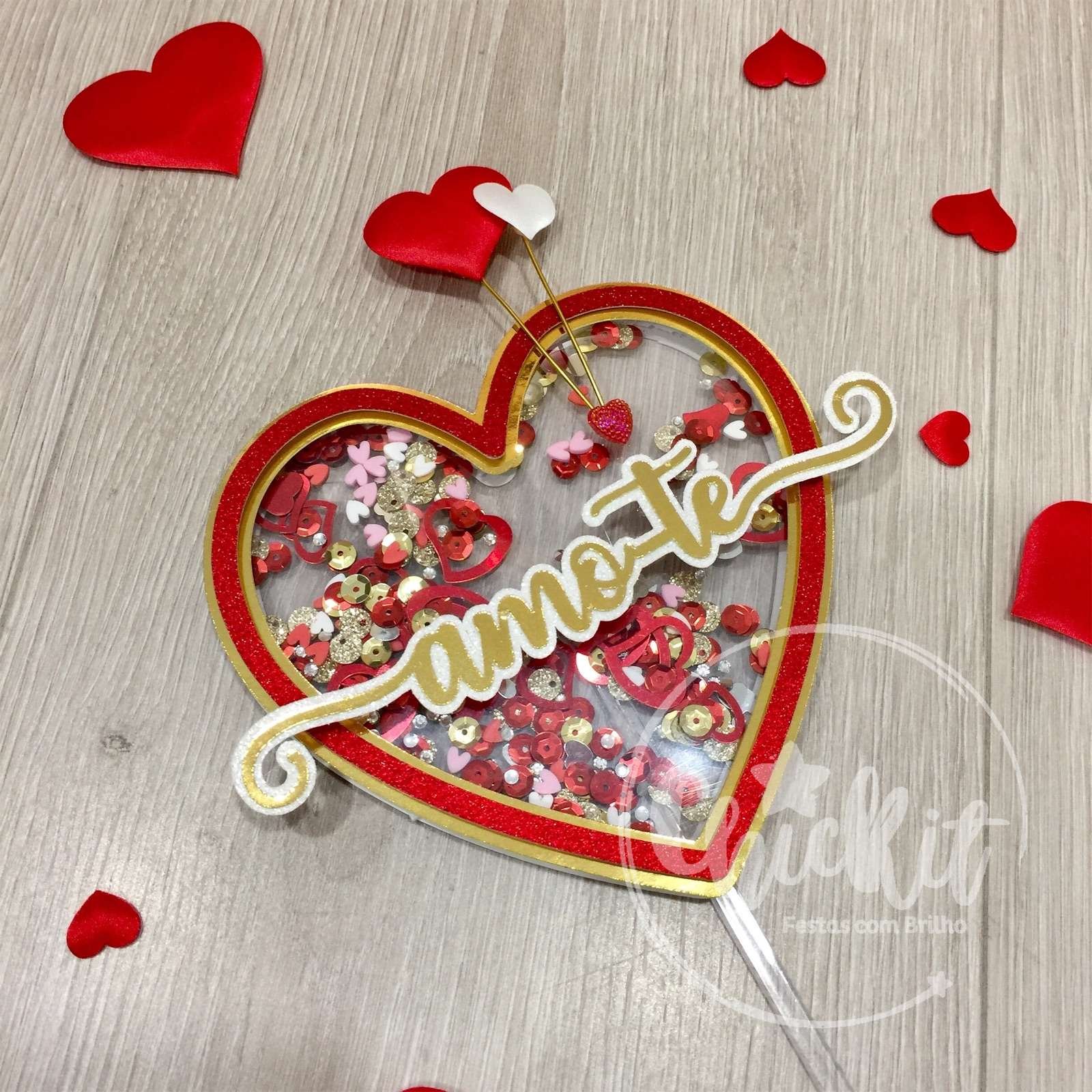 🎉 Expressão Vibrante de Amor: Topo de Bolo Shaker “Amo-te” para o Dia dos Namorados! 🍰💖