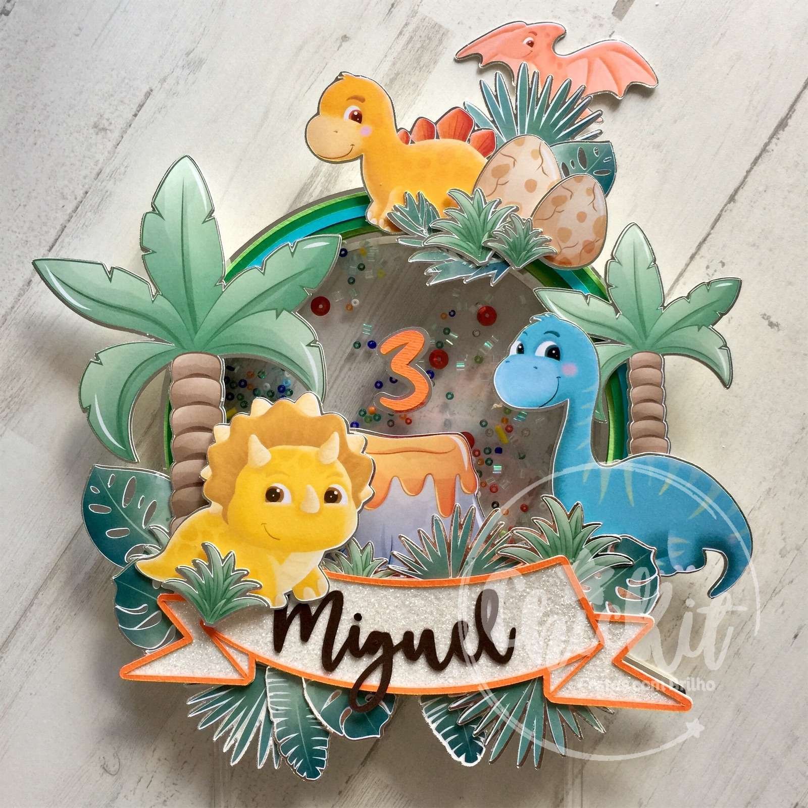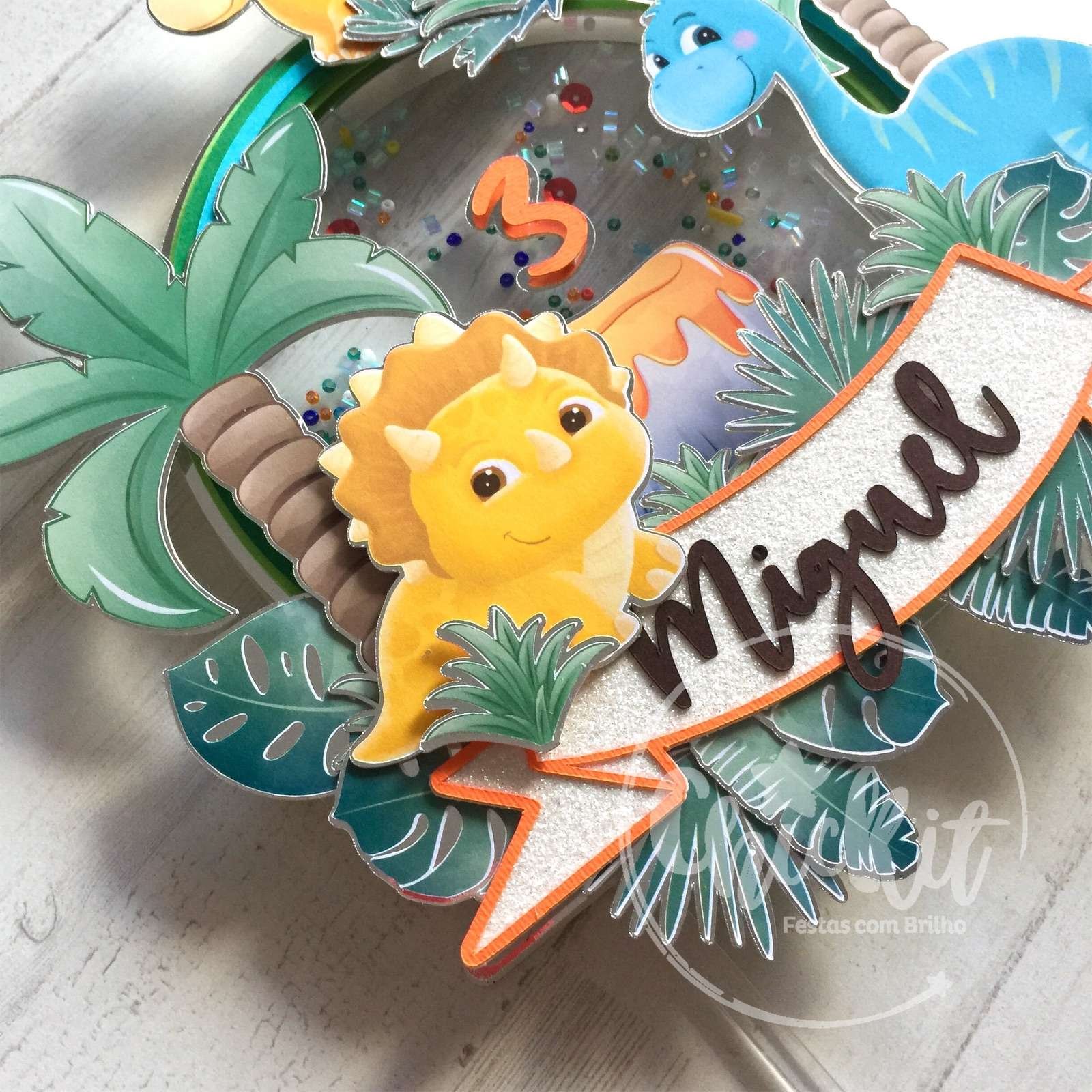 🦕🌟 Topo Shaker Dinossauros Personalizável: Diversão Única no Bolo! 🎂💡