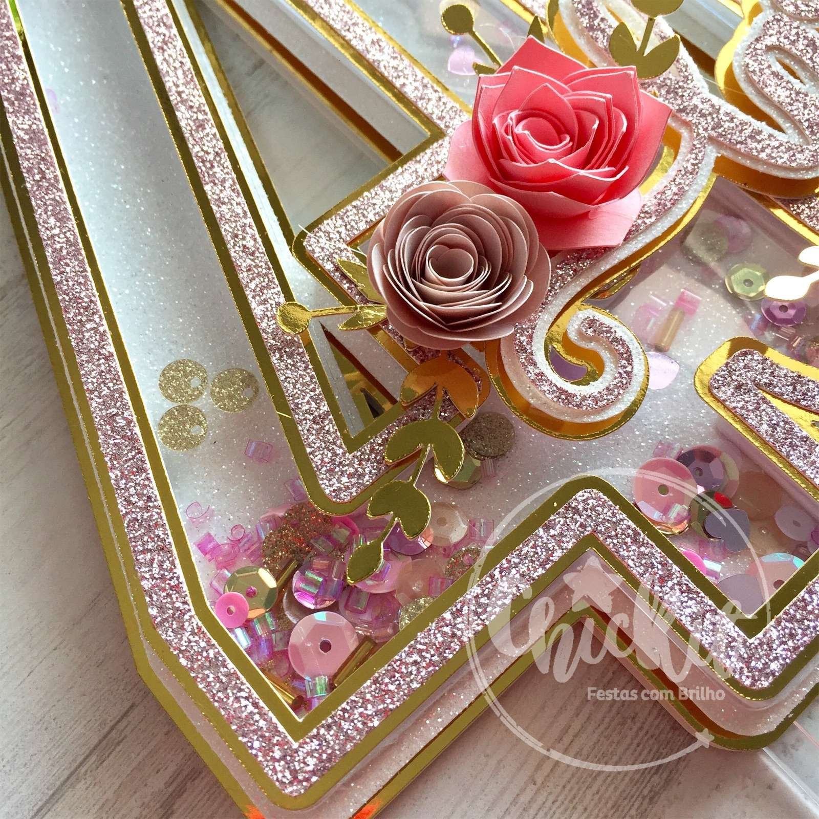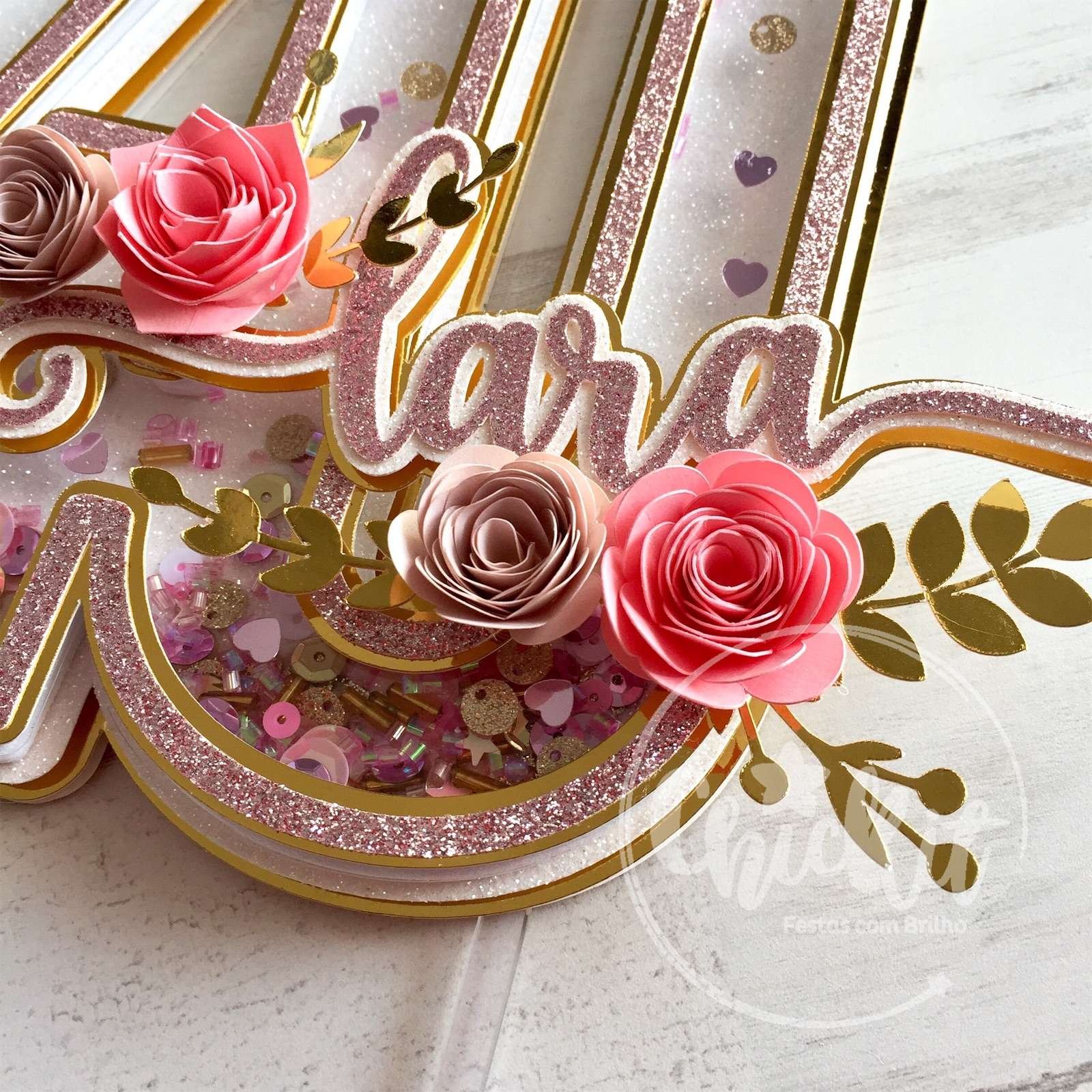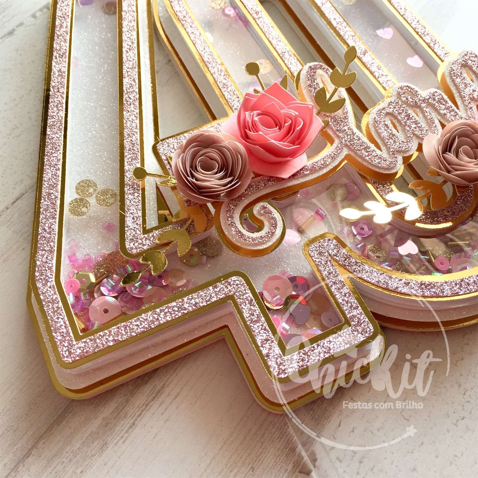 Topo de Bolo Shaker Elegante com Flores de Papel