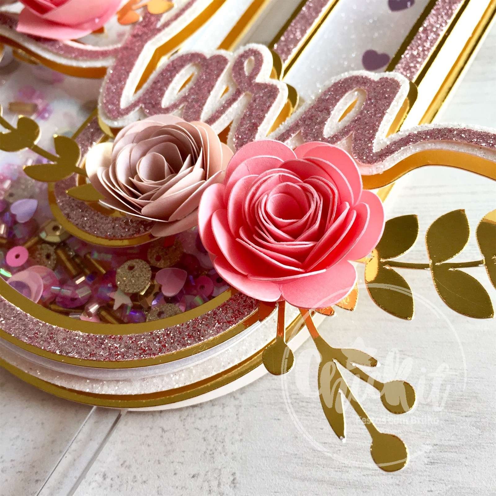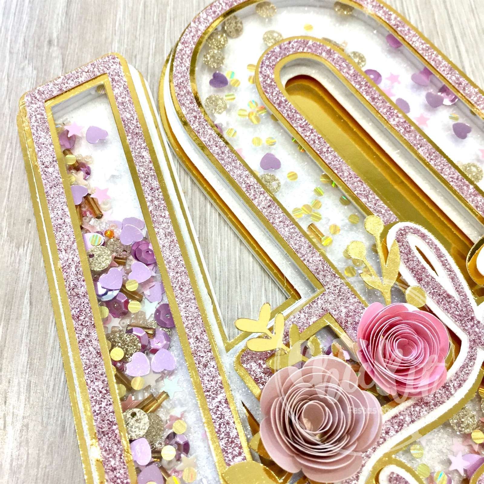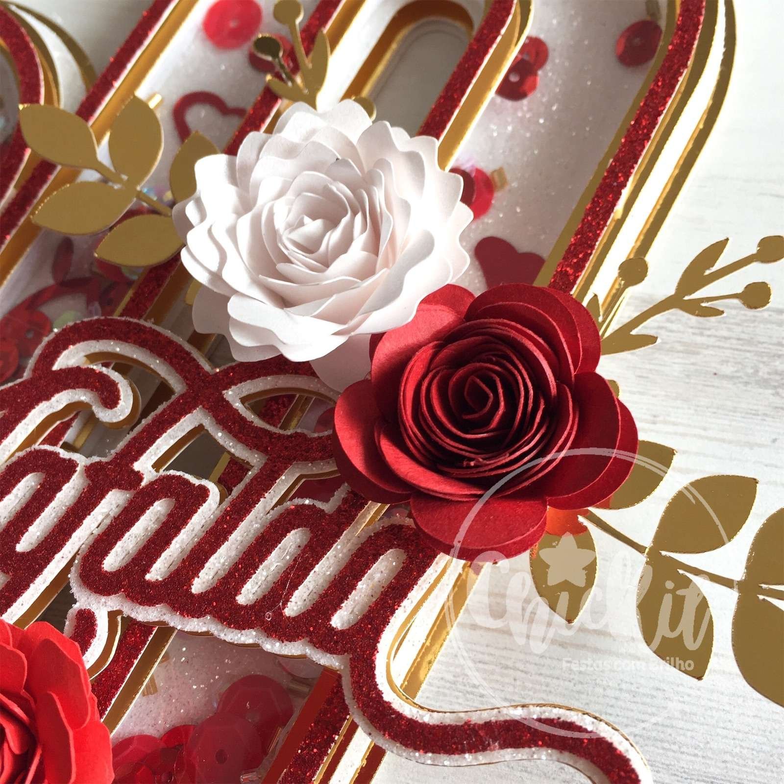 Topo de Bolo Shaker Elegante com Flores de Papel