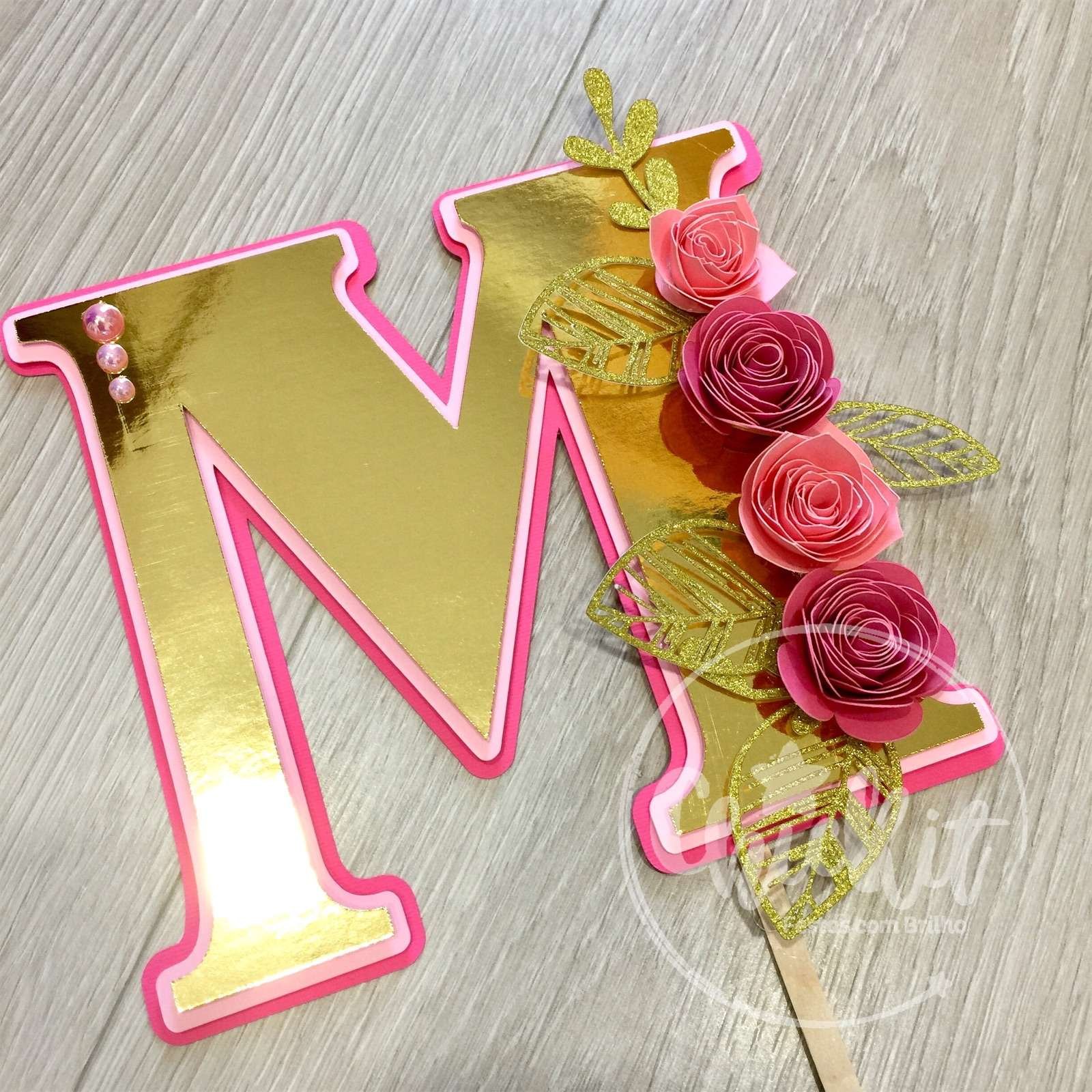 Topo de Bolo Letra com Flores