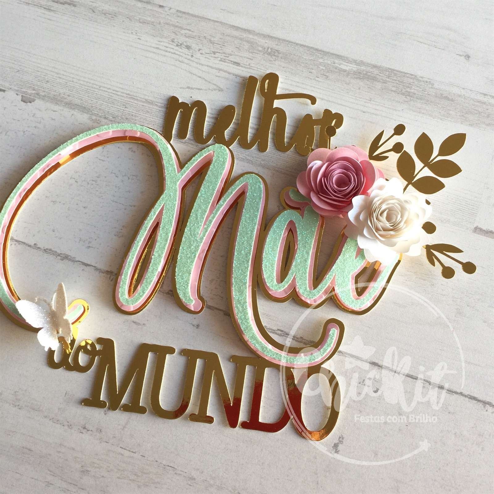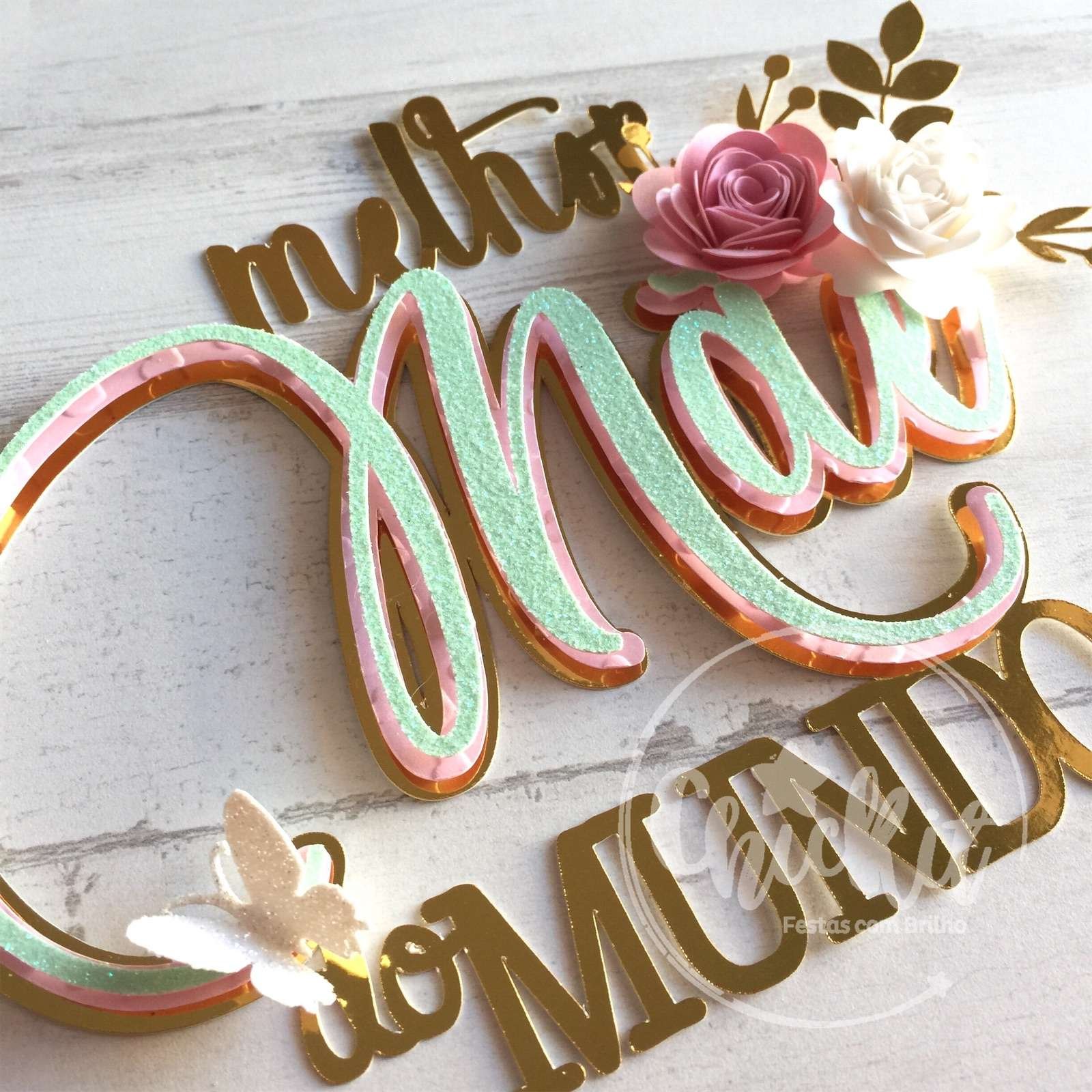 Topo de bolo Melhor Mãe do Mundo com flores