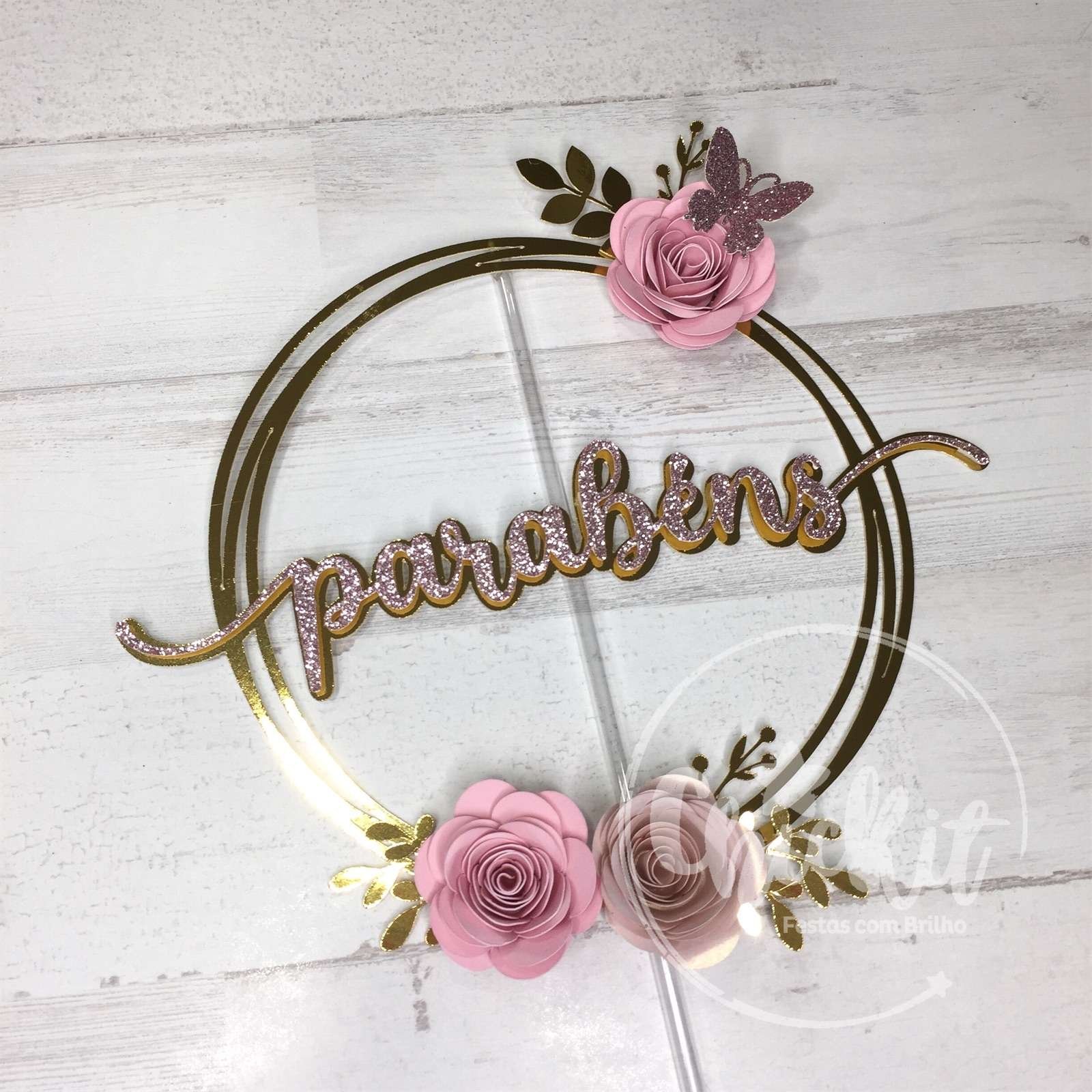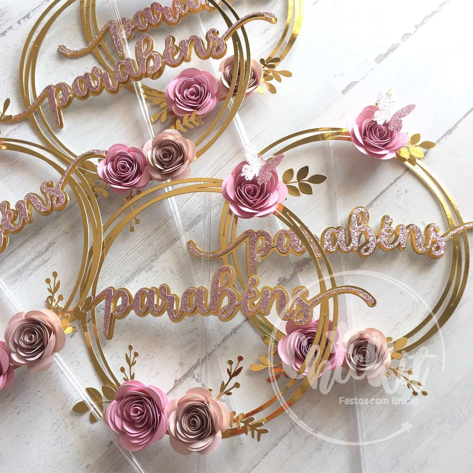 🌸 Celebre com Estilo: Topo de Bolo “Parabéns” com Flores de Papel!