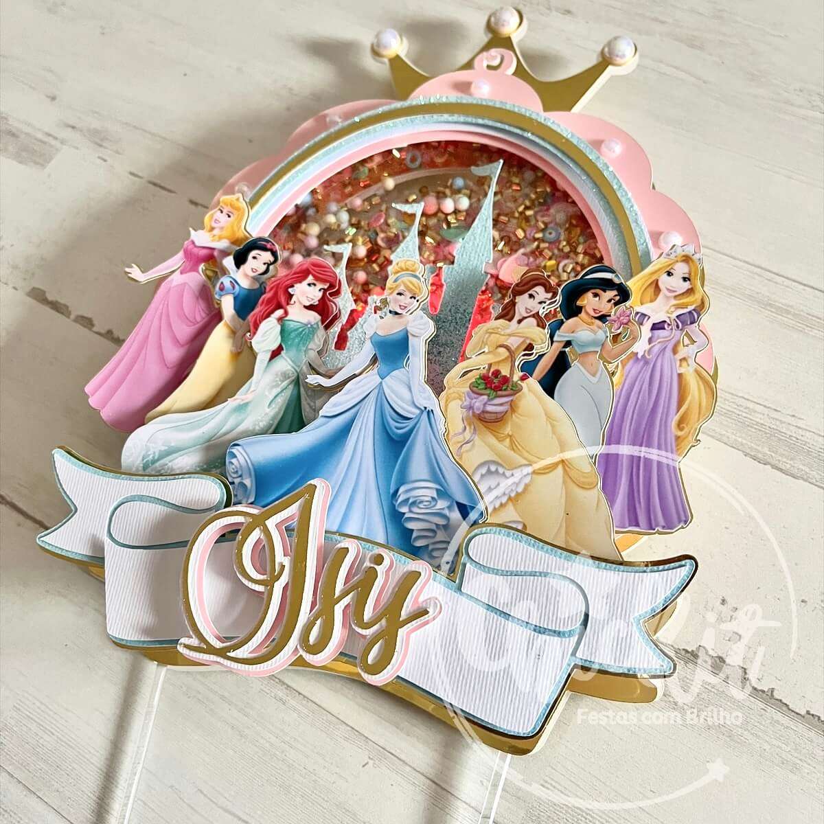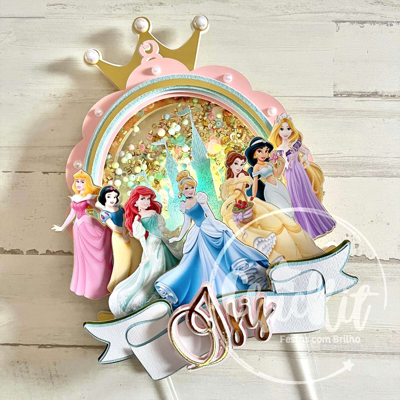 Topo de Bolo Princesas com Shaker