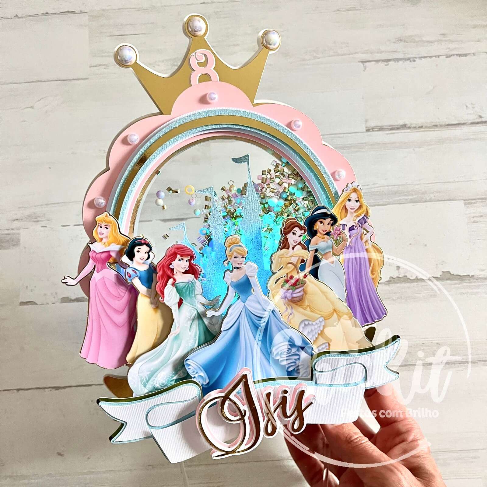 Topo de Bolo Princesas com Shaker e Luz