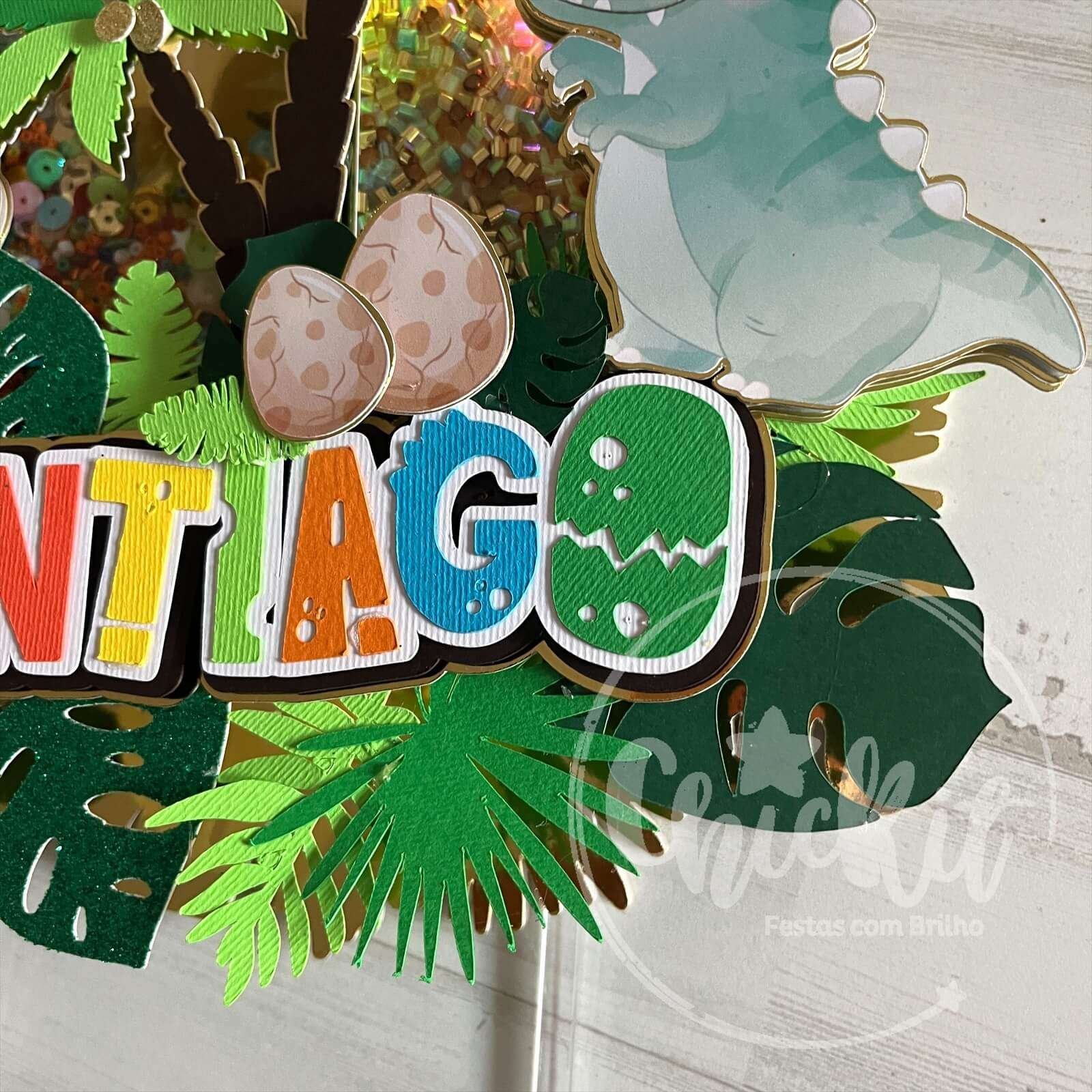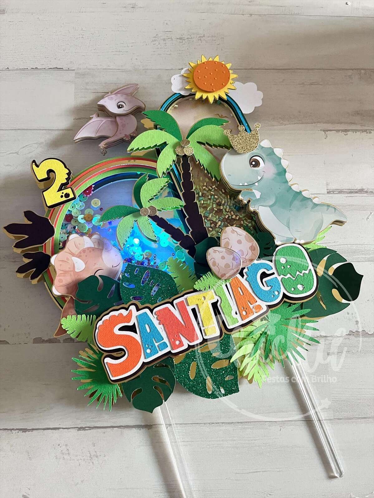 Dê Vida ao Seu Bolo com o Nosso Topo Shaker Personalizado de Dinossauros!