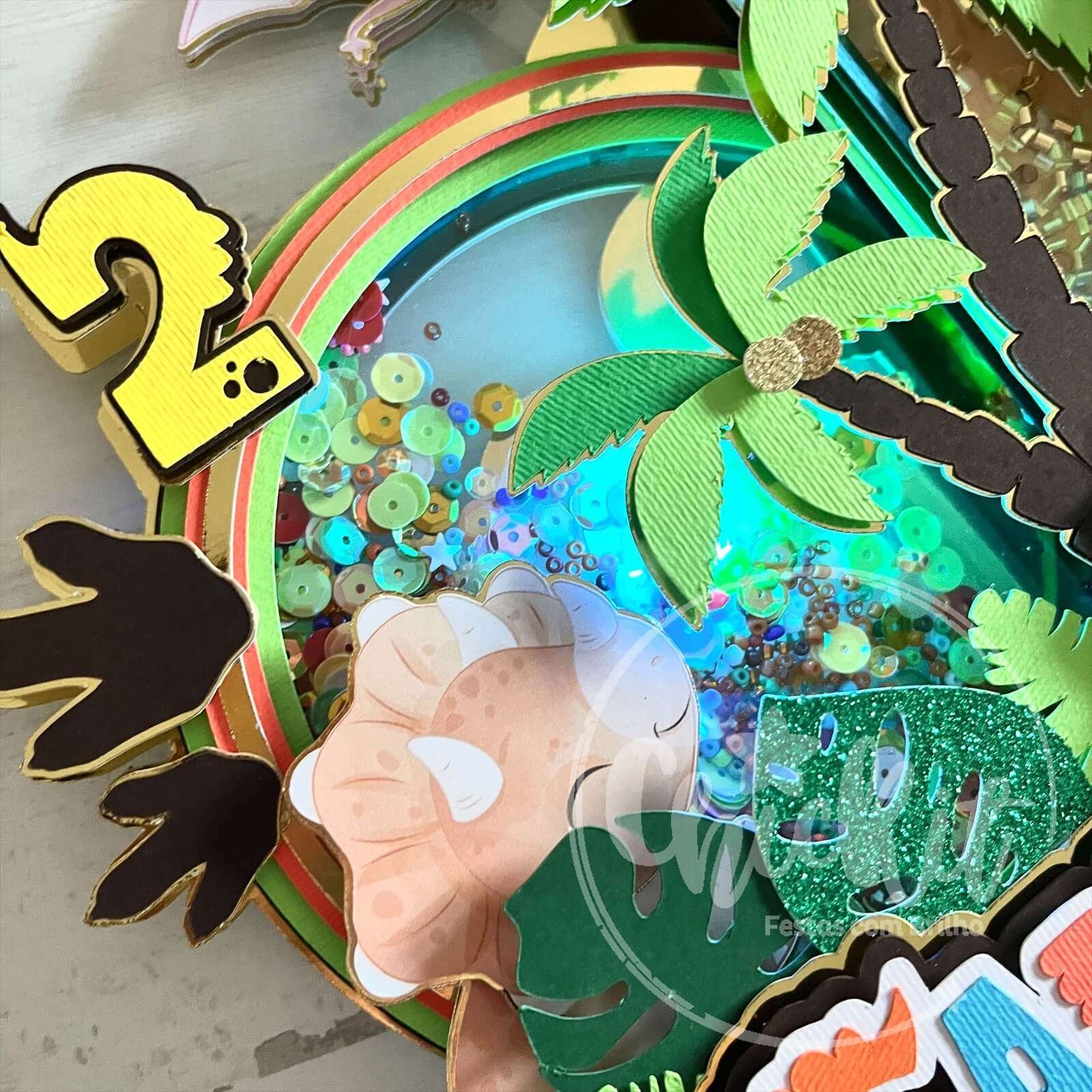 Celebre o aniversário com um toque pré-histórico! Apresentamos o nosso topo de bolo shaker temático de dinossauros, onde pode personalizar com o nome e idade do aniversariante. Escolha entre a opção com luzes LED para um efeito ainda mais mágico. Trazendo alegria e fascínio à sua festa, este topo de bolo é a escolha perfeita para os amantes de dinossauros de todas as idades. Faça já a sua encomenda online e transforme o seu bolo numa experiência única e encantadora!