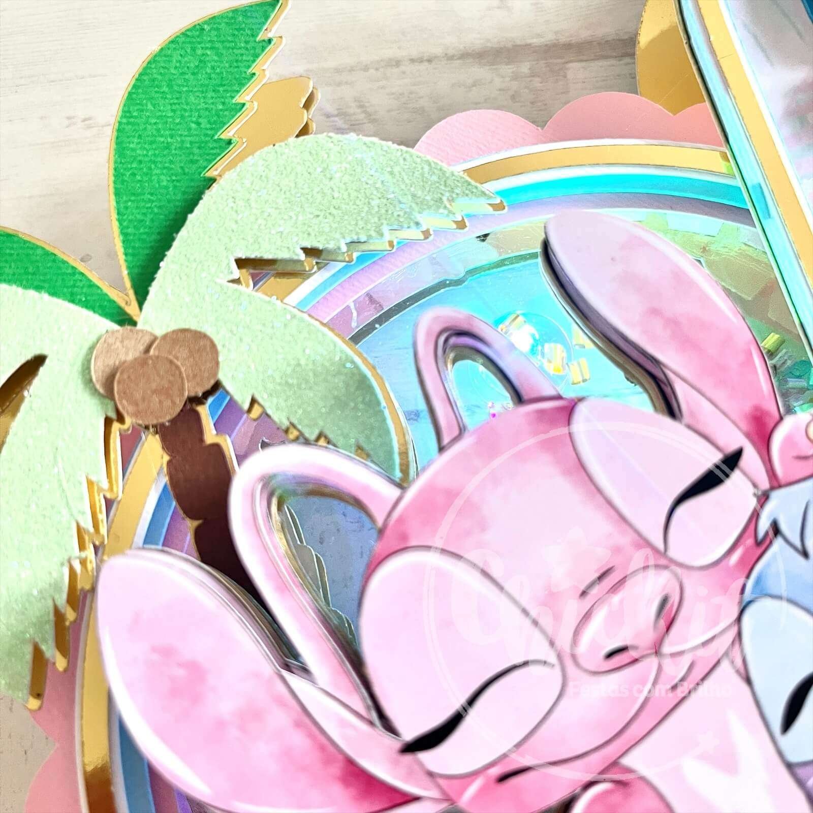 Se procuras um topo de bolo que seja muito mais do que uma simples decoração, este topo shaker do Stitch & Angel é a escolha perfeita! Com várias camadas de papel de alta qualidade, transparências e um efeito shaker que dá um toque especial à tua festa, este topper é feito com todo o carinho para tornar o teu dia ainda mais inesquecível.