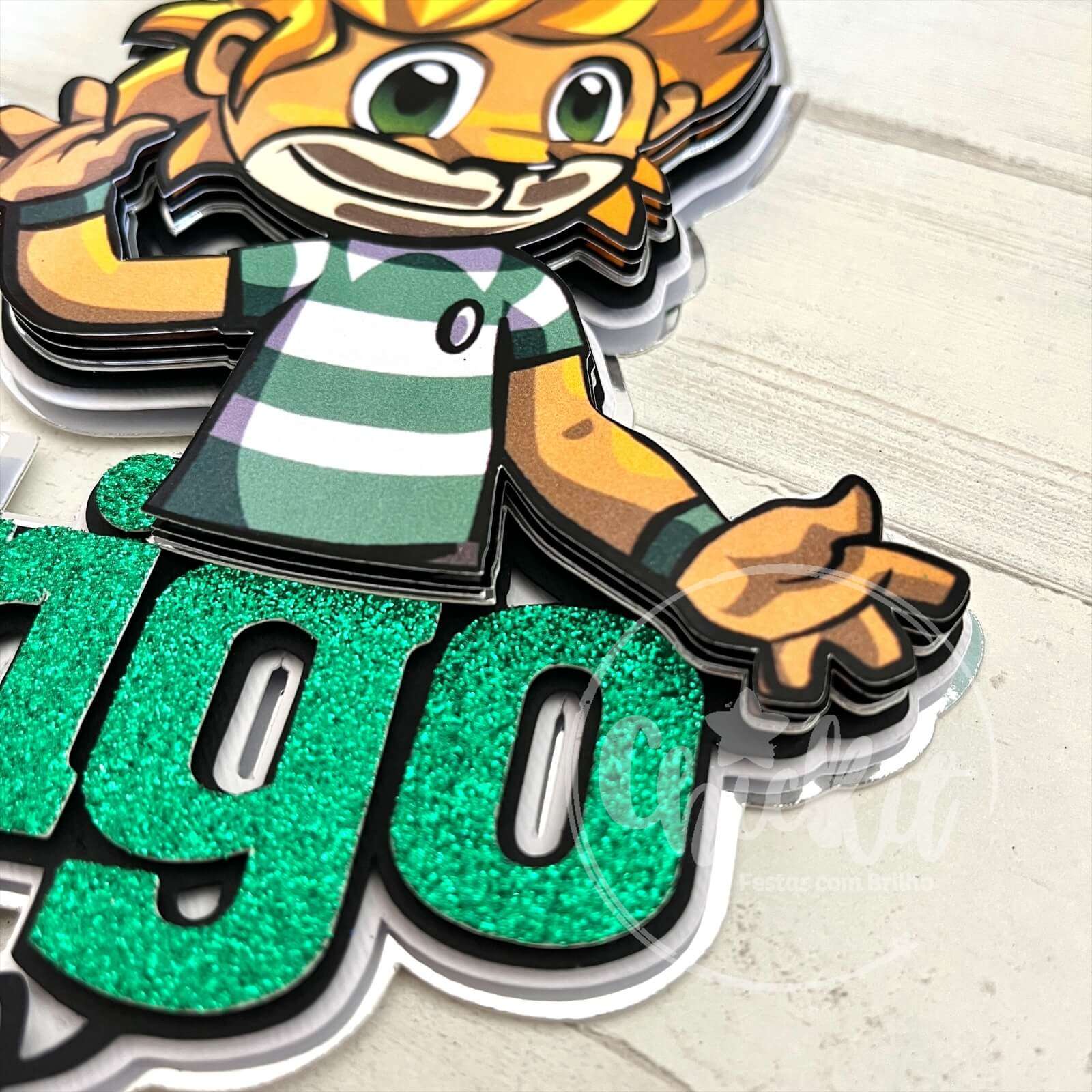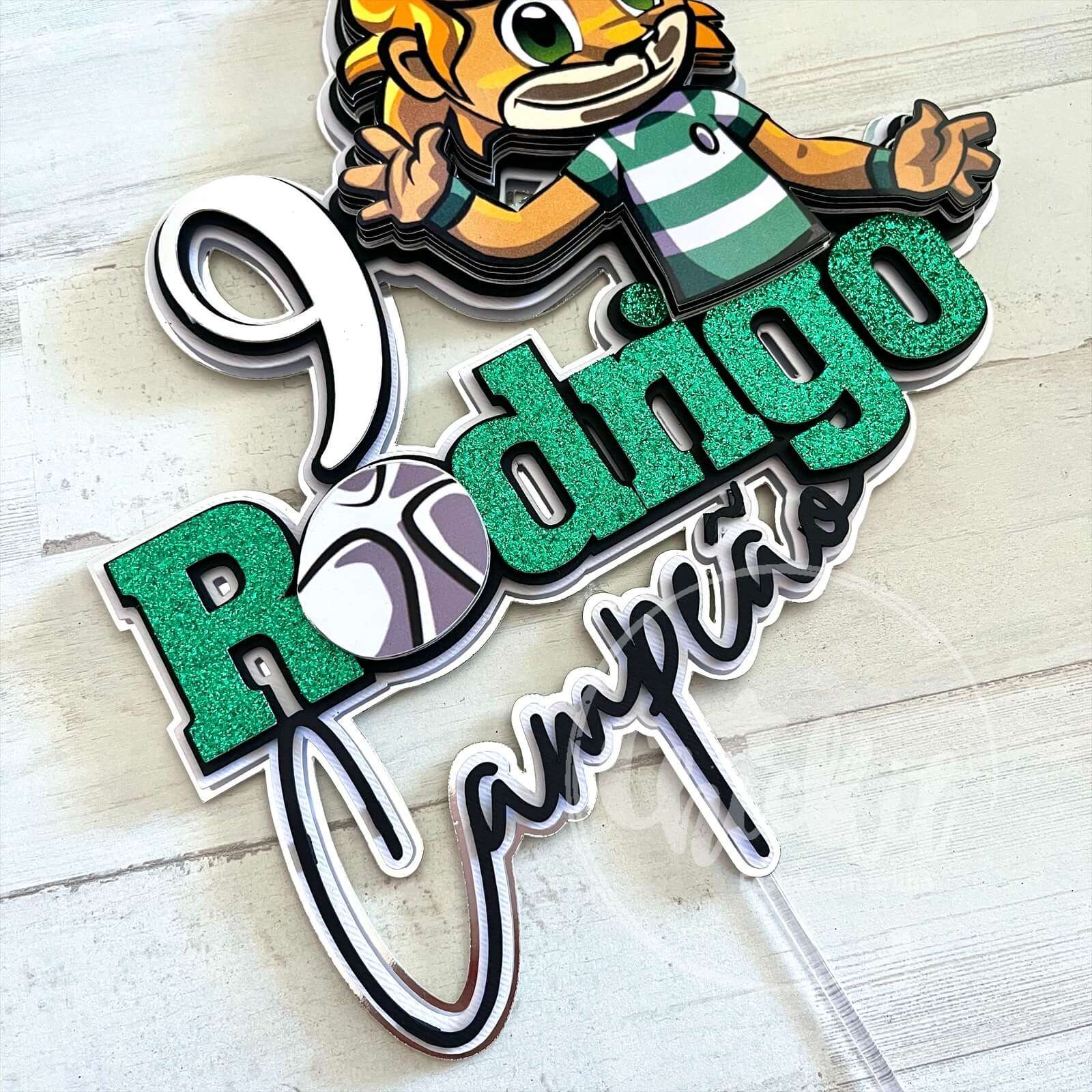 Se tens um mini craque em casa, este topo de bolo personalizado vai fazer a festa brilhar ainda mais! Inspirado no leão mais querido de Alvalade, este topper com o nome e idade da criança é feito com camadas, brilho e muitos detalhes que fazem toda a diferença.