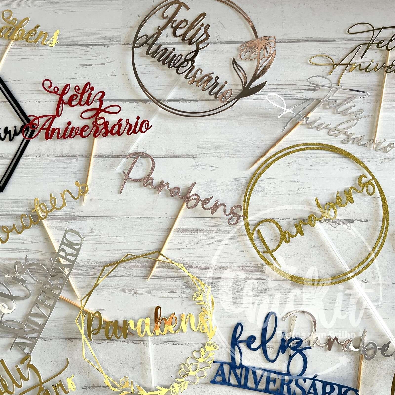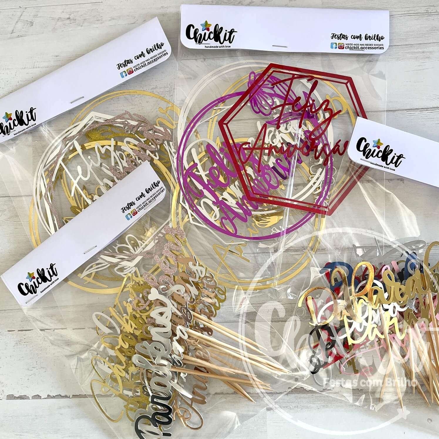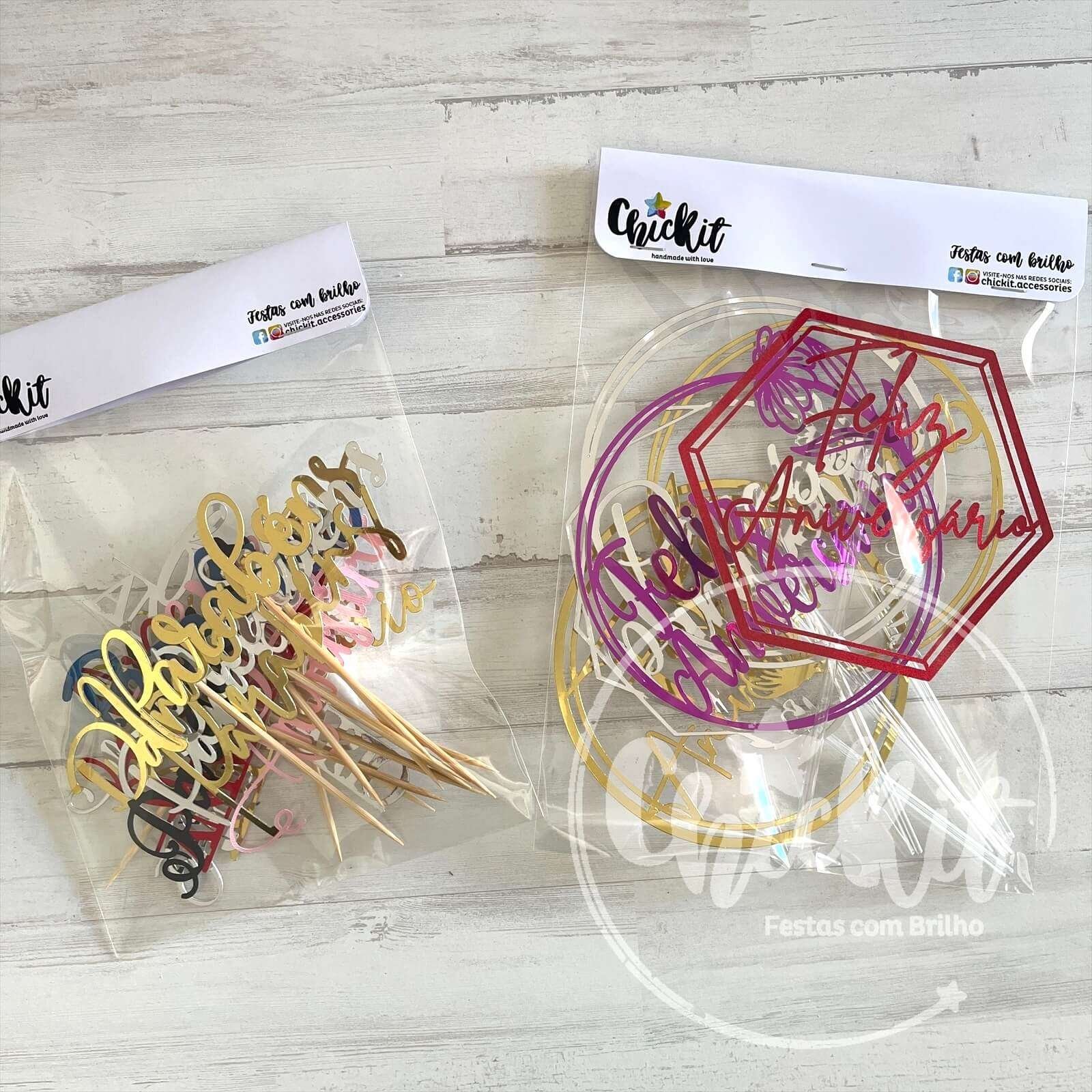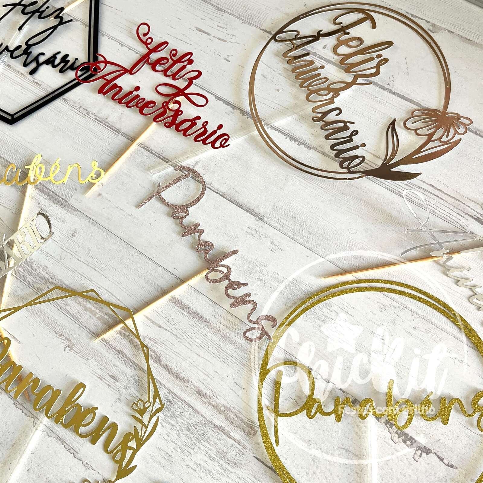 Pack 6 Topos de Bolo Parabéns/Feliz Aniversário
