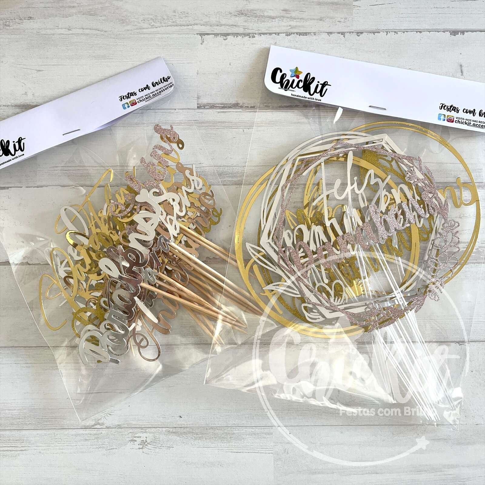 Pack 12 Topos de Bolo Parabéns/Feliz Aniversário